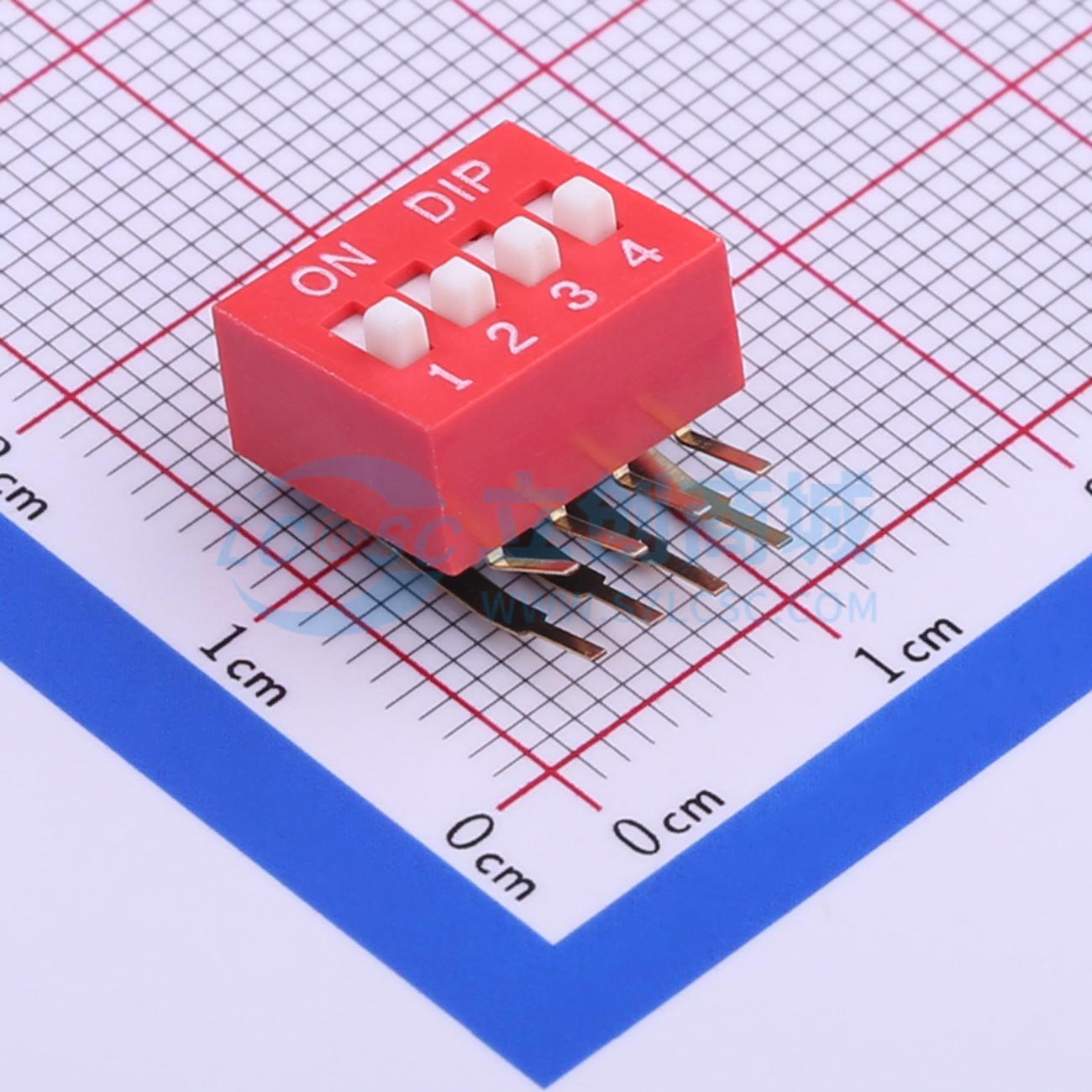 间距2.54mm 平拨,凸起式 4位拨码开关