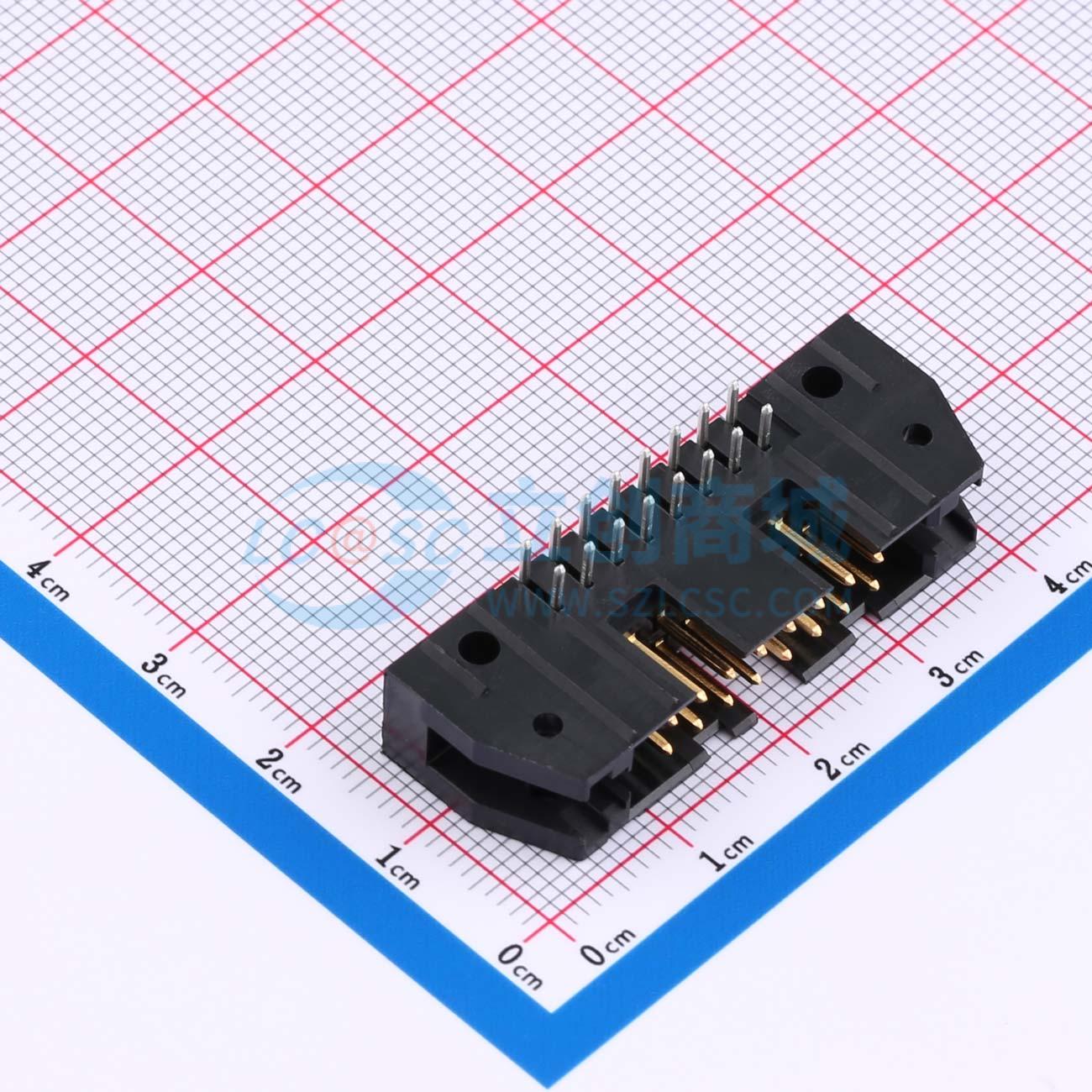 - 线对板连接器,16 位,中心线间距 2.54 mm [.1 in],直角,通孔焊接式,AMP-LATCH 通用插头,带状电缆连接器