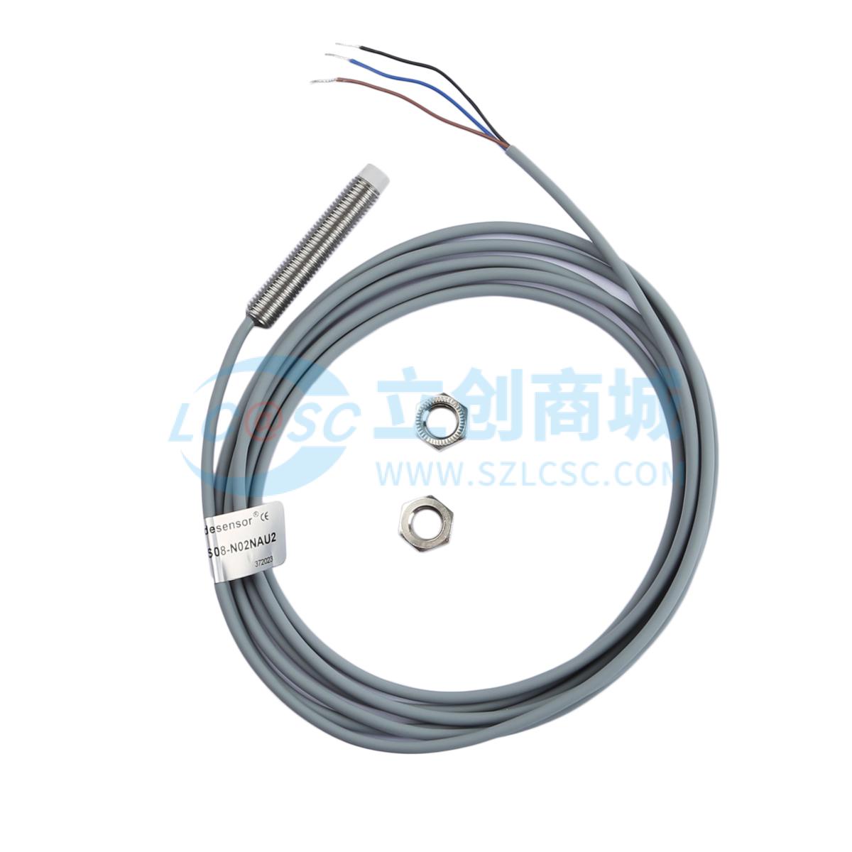 - M8电感式传感器 体积小 精度高 稳定可靠电感式 不锈钢外壳 M8 非齐平 NPN 常开三线 2米电缆 45mm管长