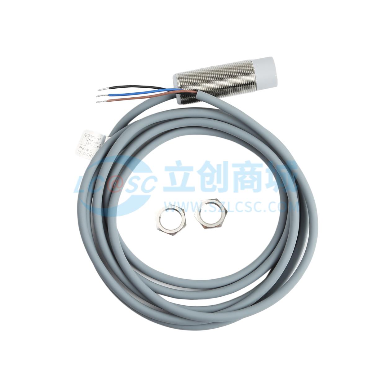 - M18电感式传感器 精度高 稳定可靠电感式 黄铜镀镍外壳 M18 非齐平 PNP 常开三线 2米电缆 55mm管长