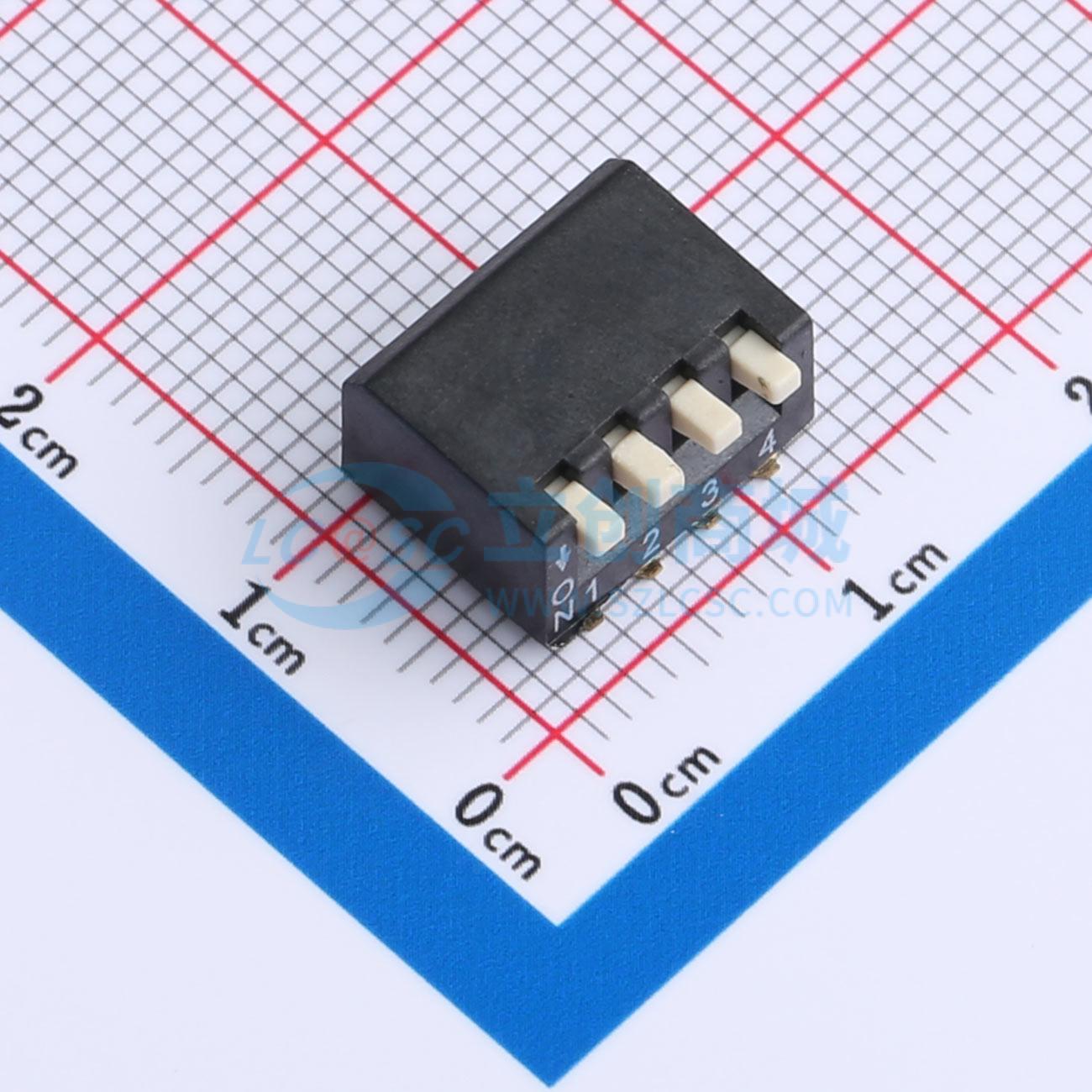 2.54mm间距 4位 琴键侧拨型窄体凸柄 贴片 拨码开关