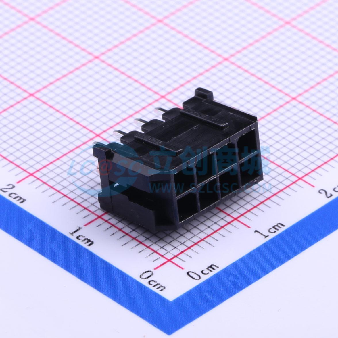 - Micro-Fit3.0 间距3.0mm 双排8PIN位(2*4) 直插/直针 插座/母座 黑色 镀锡 立式插件 配套:HX30002-8P