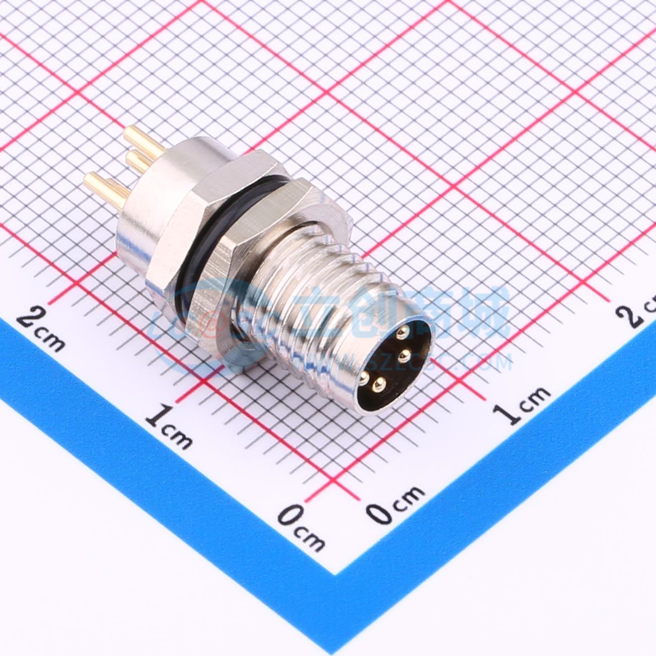 - 连接器 正成M8防水连接器板后安装针型插座金属壁PCB式螺牙M8x1插头座