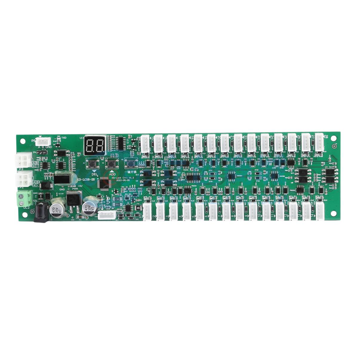 - 其他模块 1、采用宽电压/高速/高可靠/低功耗/强抗静电/较强抗干扰的新一代51内核MCU设计,针对智能快递柜行业应用开发的接口控制板,主要功能是多路电控锁控制和多路电控锁状态检测及强大灵活的扩展性,可满足不同客户需求。 2、支持电磁锁、灯箱、风扇等多种外设控制;输入电源12V/24V;通信方式:RS-485通信;数码管显示;支持一键全开;保护机制:带短路保护、防反接保护、防雷击浪涌保护、各通道隔离、三防漆保护。 3、可最大级联100 块板子。 4、数码管显示。 5、28通道数对应28通道格口数。