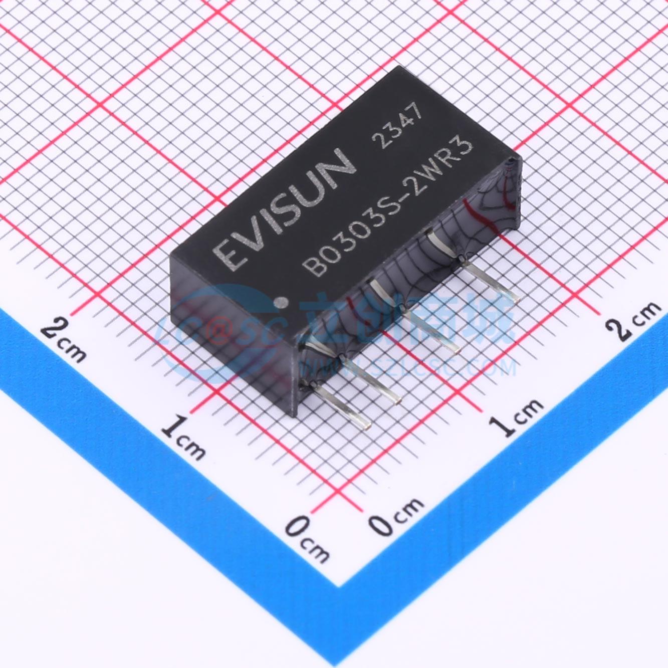 - B0303S-2WR3型号是定电压输入,隔离非稳压单路输出的DC/DC模块电源产品;输入电压3.3Vdc,输出电压3.3Vdc,输出电流606mA,SIP国际标准封装引脚,高可靠高效率,低纹波系数和低噪音;输出可持续短路保护,自恢复;该系列产品是专门针对板上电源系统中需要产生一组与输入电源隔离的电压的应用场合而设计的。该产品适用于:1)输入电源的电压比较稳定(电压变化范围±10%Vin);2)输入输出之间要求隔离(隔离电压≤1500VDC);3)对输出电压稳定度要求不高;4)典型应用:纯数字电路场合,一般低频模拟电路场合,继电器驱动电路,数据交换电路场合等。