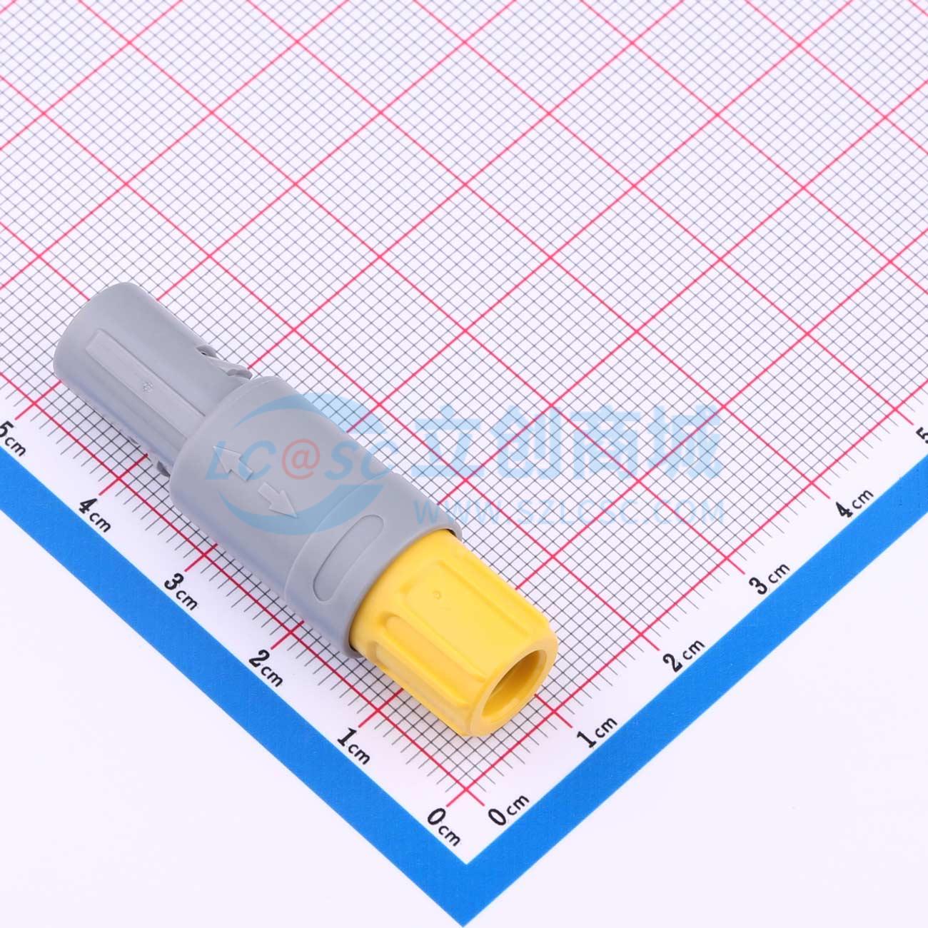 - M0系列1P14Pin,LPAG直式插头,塑料外壳,推拉自锁连接器,外观铜镀铬,推拉自锁连接器,航空连接器插头,圆形连接器,信号连接器,电源连接器,医疗医美美容仪连接器,尾帽黄色