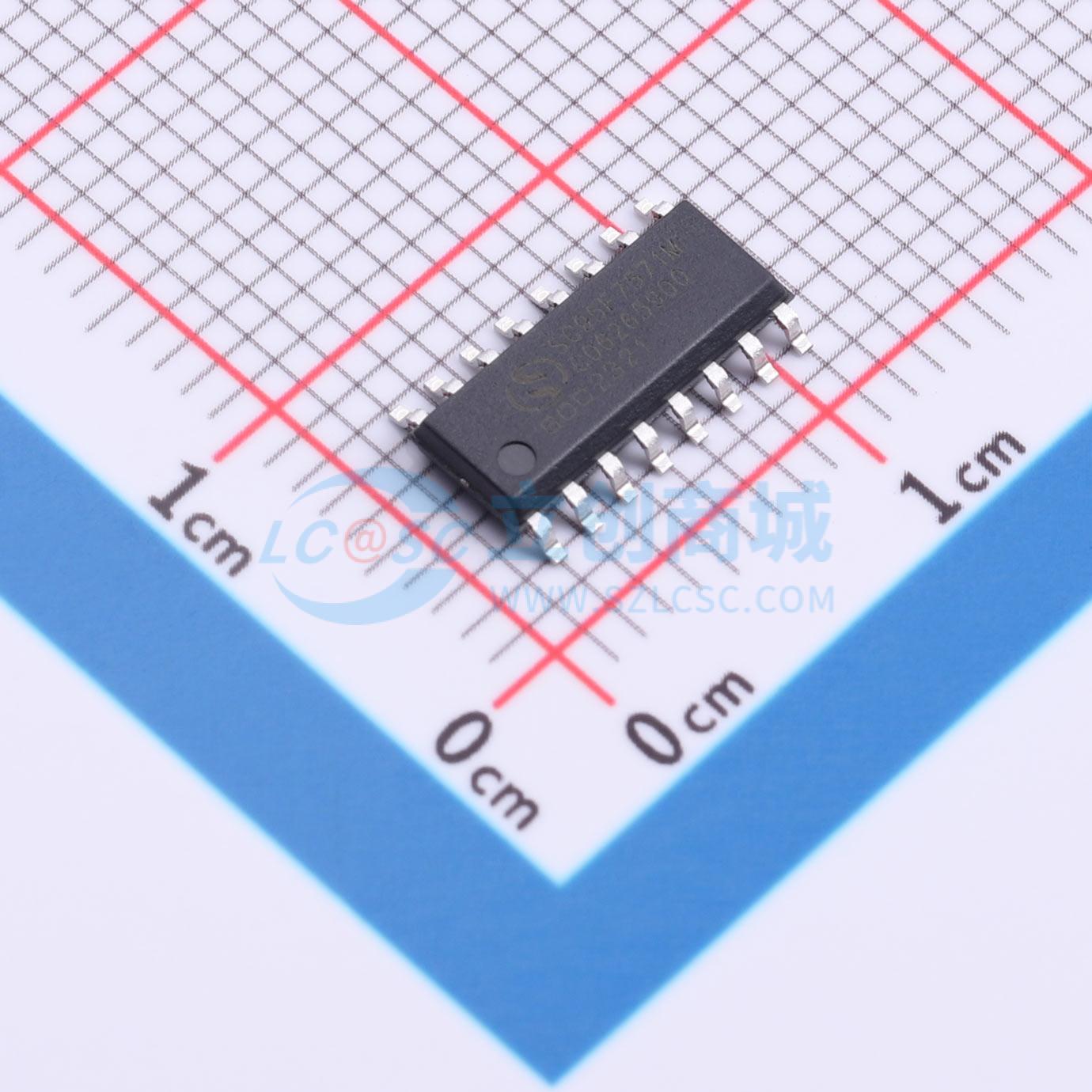 此图展示了型号为 SC95F7571M16U 的引脚布局