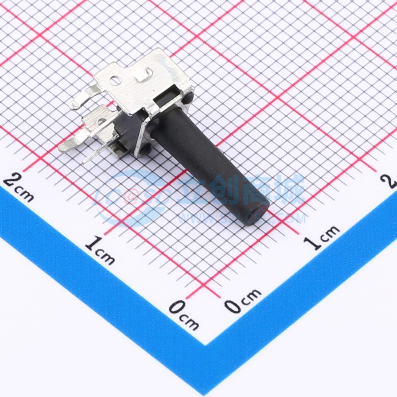 - 90° 圆孔架轻触开关:柄长15.5mm;动作力250gf;行程0.25±0.1mm;CH=4.0mm;机械寿命10万次