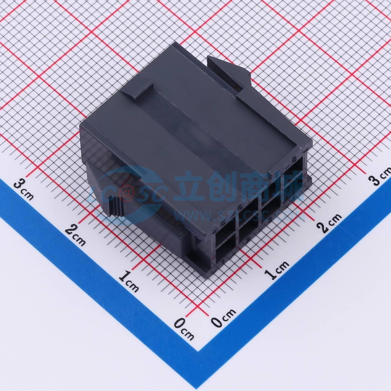 连接器外壳 Mini-Fit Jr.插头外壳,双排带面板安装耳,尼龙6/6材质,符合UL 94V-2标准,面板安装,8路电路,耐灼热丝,黑色