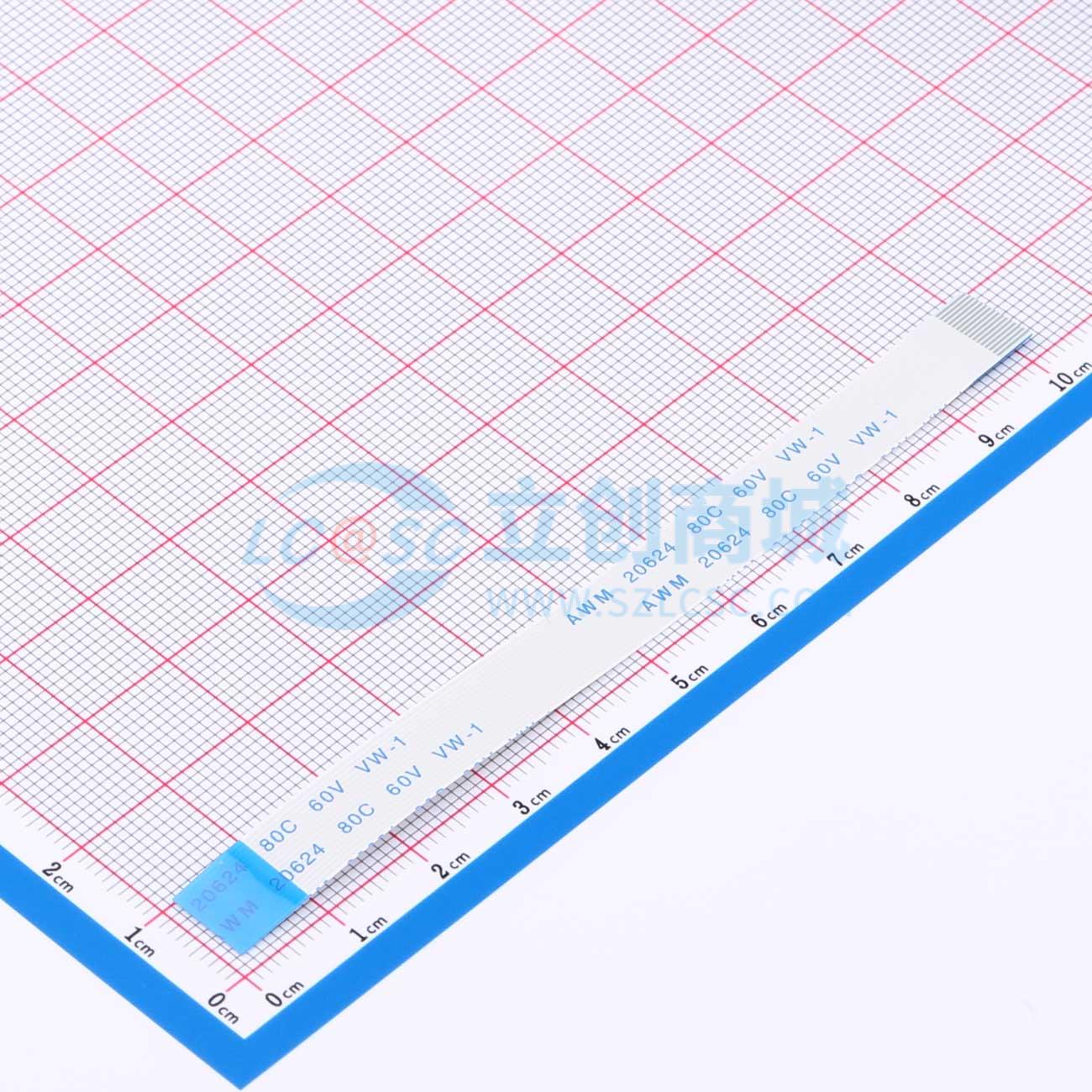 FFC排线0.5mm 16P总长100mm 反向 金手指4m 加强板8mm