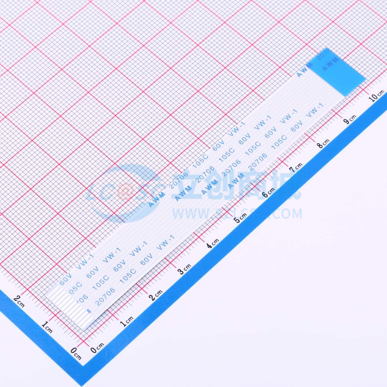 FFC排线1.0mm 13P总长100mm 反向 金手指4m 加强板8mm