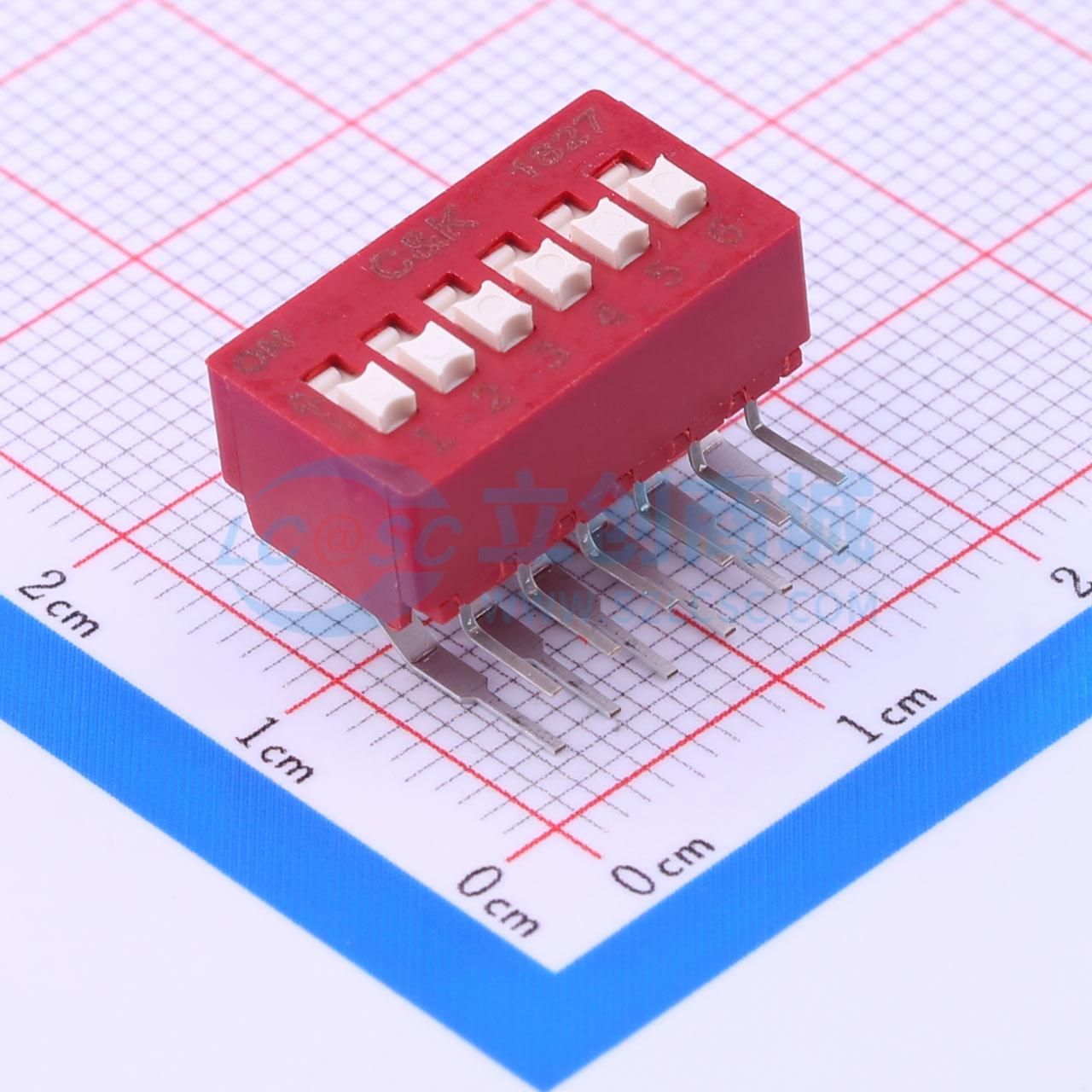间距2.54mm 平拨,凸起式 6位拨码开关