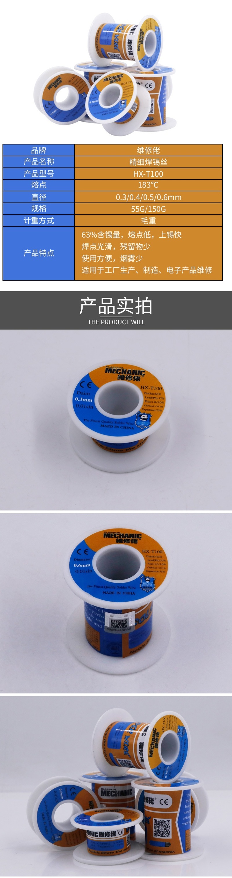 线径0.3mm,精细设计,可满足细间距、高精密元件(如芯片、传感器)的焊接需求;