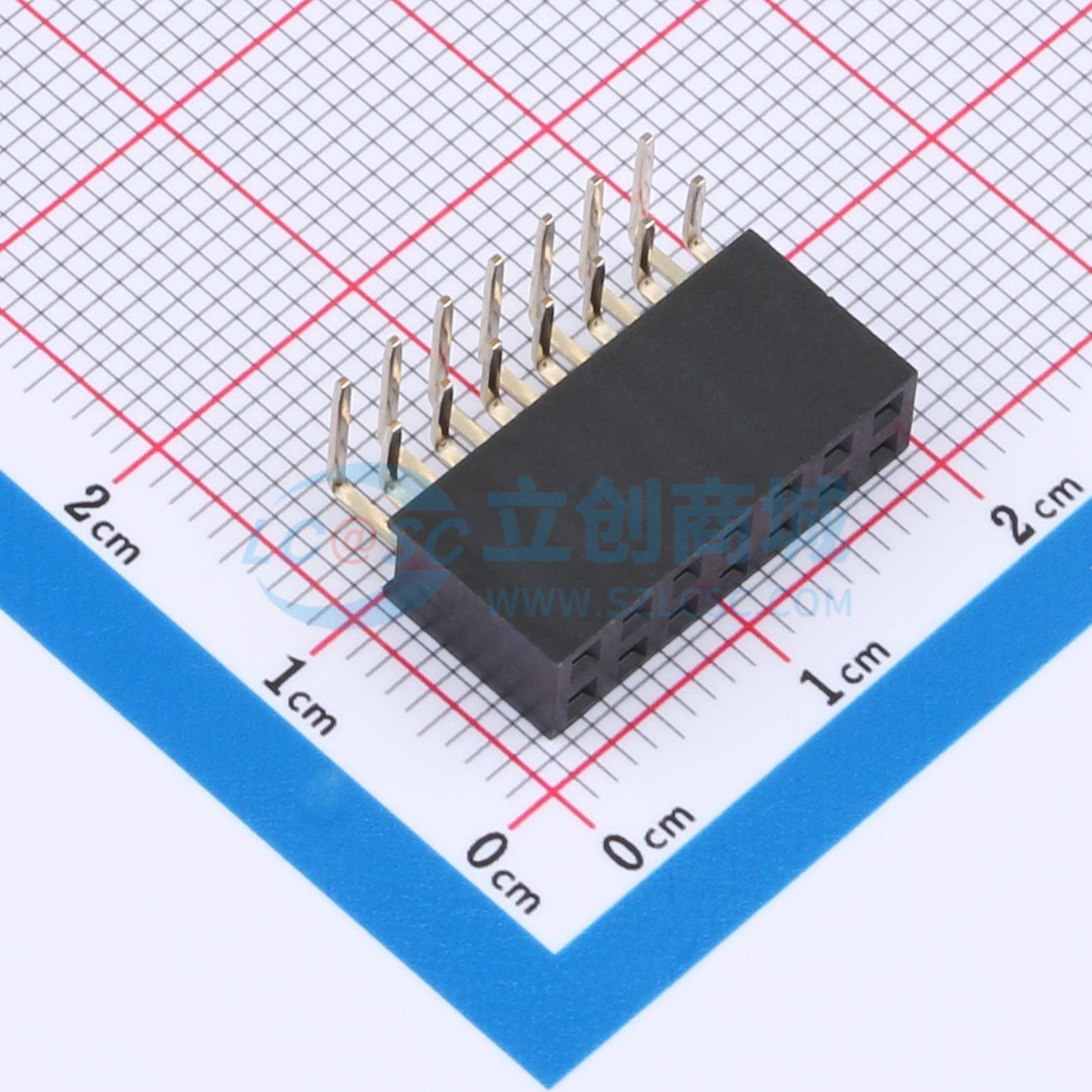 - 排母2.54FH H8.5 2x7Pin 90度弯针 PC3.0 PB12.7 DIP