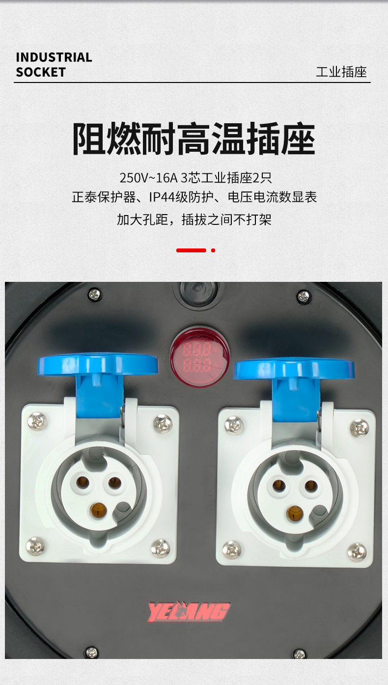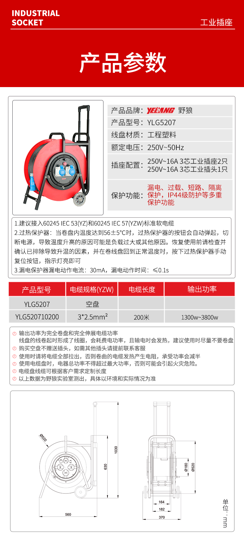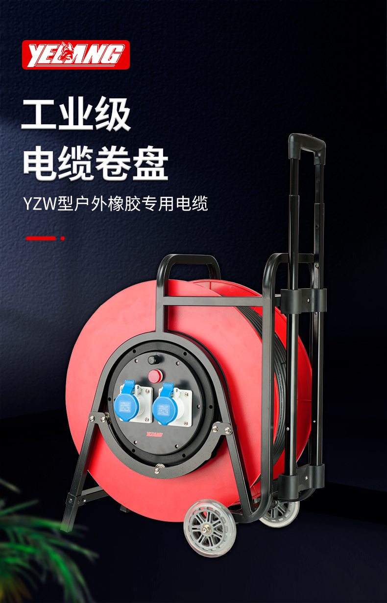 野狼YELANG 220V~250V16A工业插座IP44绕线盘拉车式电缆盘电源盘卷线盘3*2.5*200m/ YLG520710200