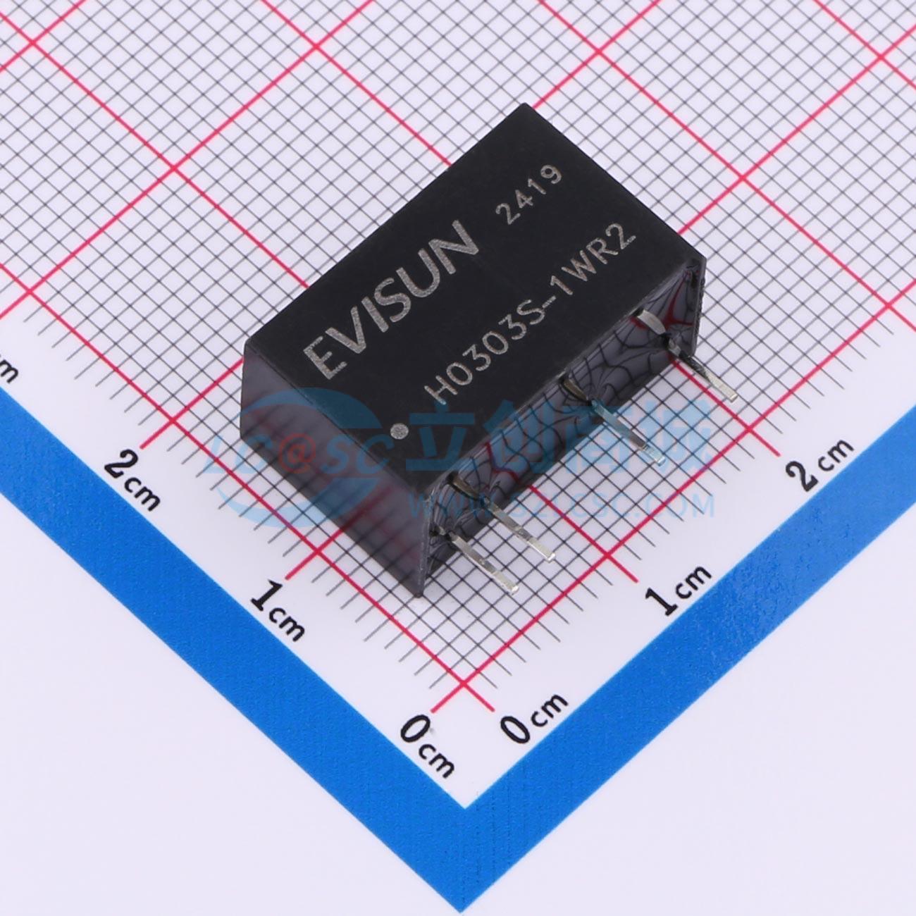 - H0303S-1WR2型号是定电压输入,隔离非稳压单路输出的DC/DC模块电源产品;输入电压3.3V(2.97V~3.63V),输出电压3.3Vdc,输出电流303mA,输出功率1W;转换效率74%;低静态电流,低纹波系数和低噪音,超低功耗;输出可持续短路保护,自恢复;最大容性负载2400uF;适用于纯数字电路,一般低频模拟电路,继电器驱动电路,数据交换电路等 ;输入输出隔离耐压6KVdc ;尺寸:长19.50*高12.5*宽9.80mm