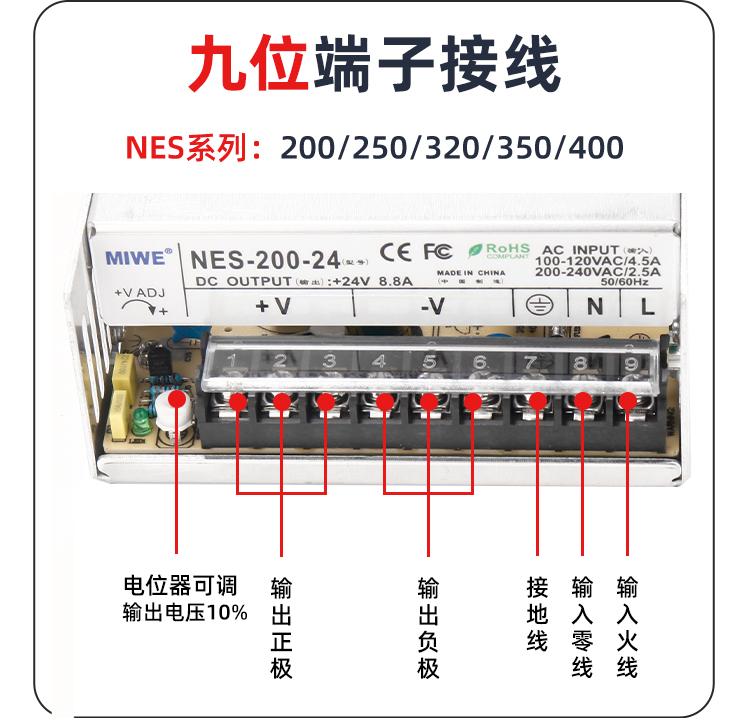 1MIWE麦纬NES-350-24开关电源广泛应用于多个领域,包括但不限于: