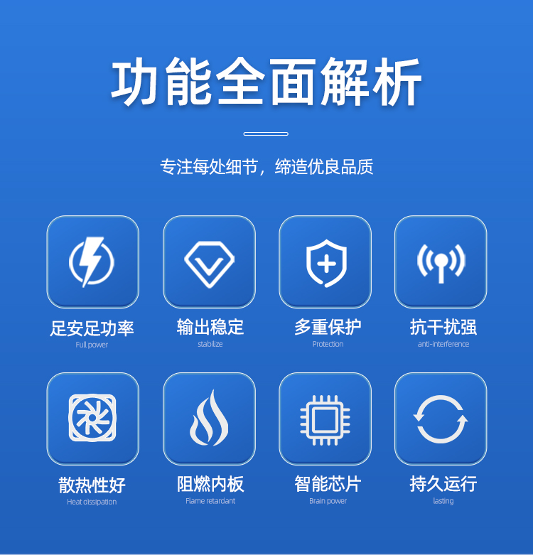 6智能芯片控制:采用进口IC芯片,提供精准的电压调节和保护功能,延长电源使用寿命。