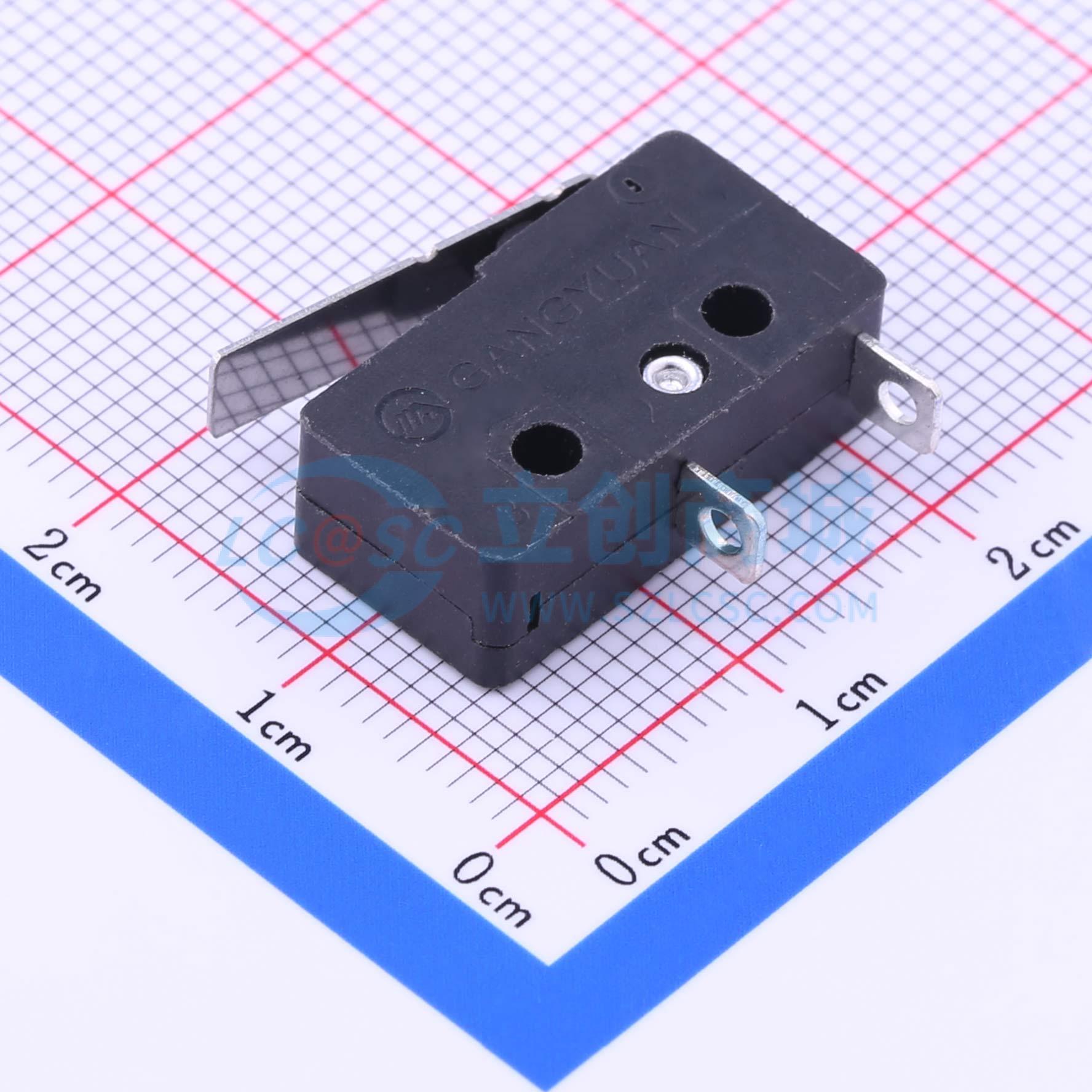 - G15系列微动开关,6A 焊线式端子,单极单投常开式,40G力度,柄长16.5MM