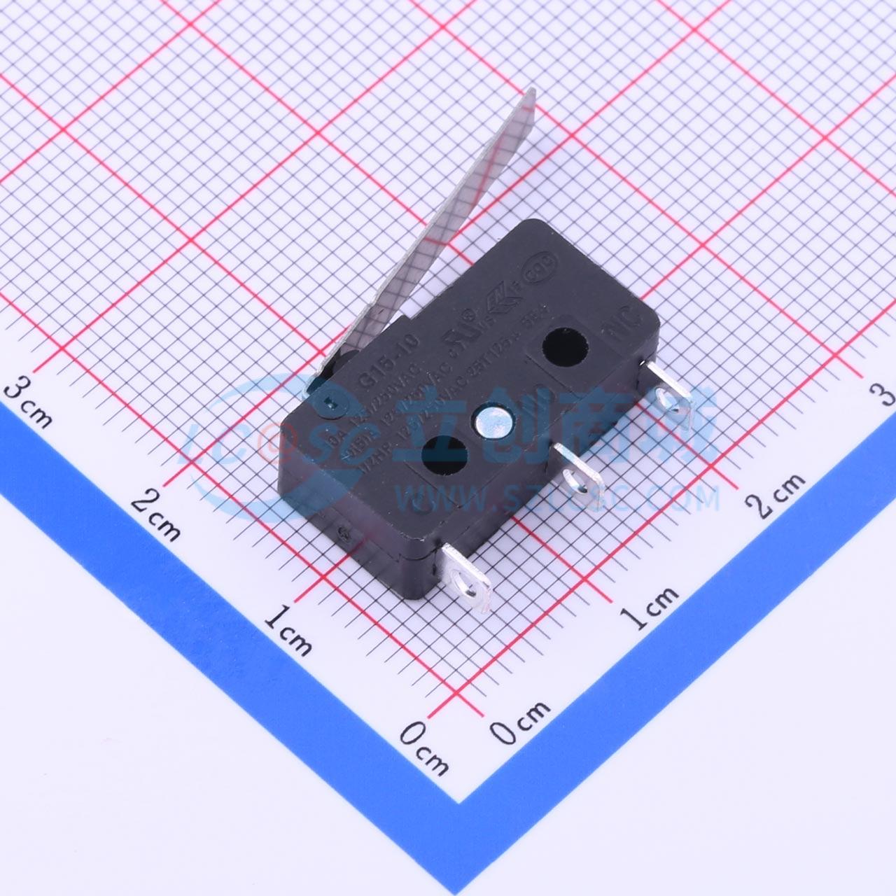 - G15系列微动开关,10A 焊线式端子,单极双投转换式,30G力度,柄长24.5MM