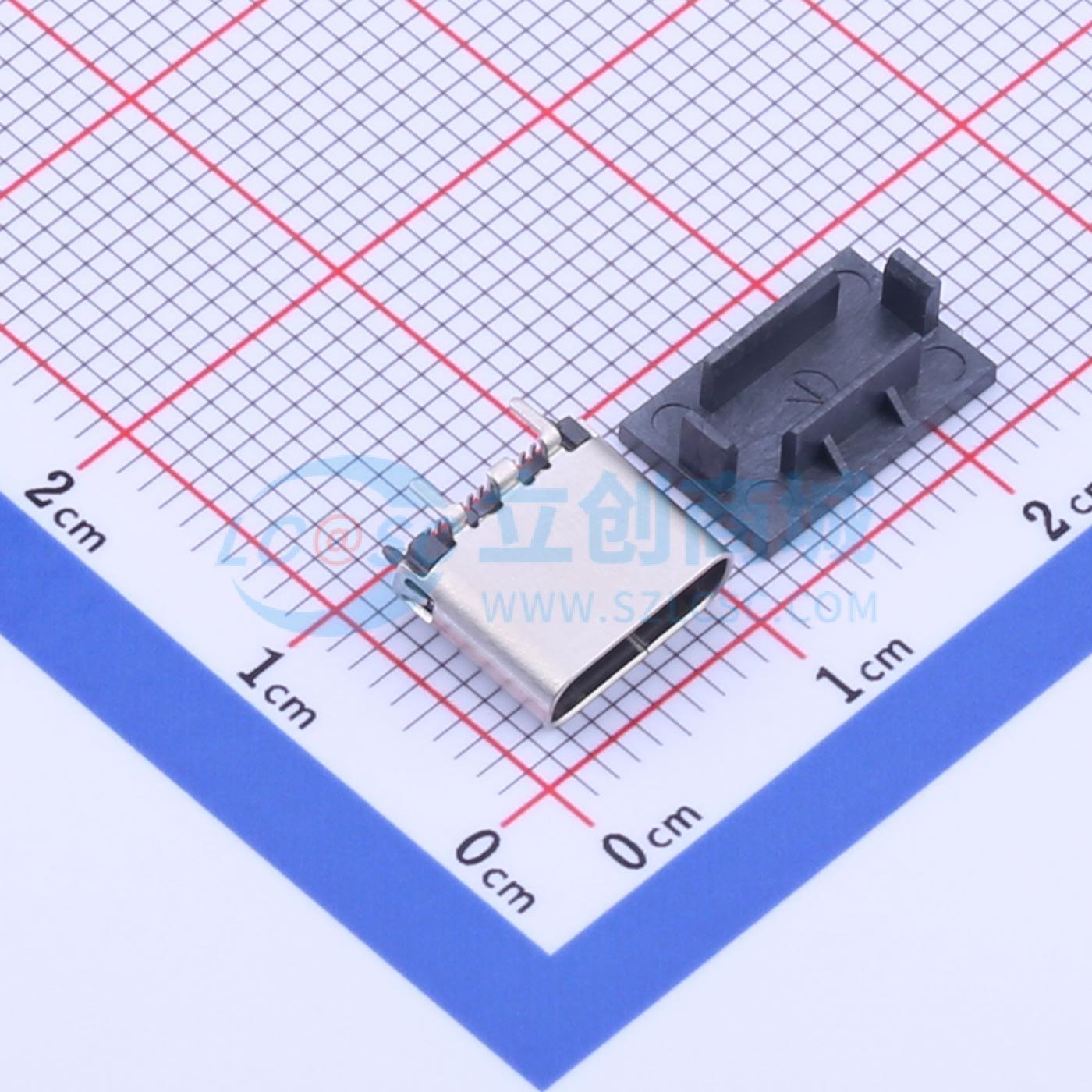 - 3.1TYPE-C连接器 母座24P直立式 SMT,H=7.4,脚长1.30 LCP黑色,G/F,外壳镀镍