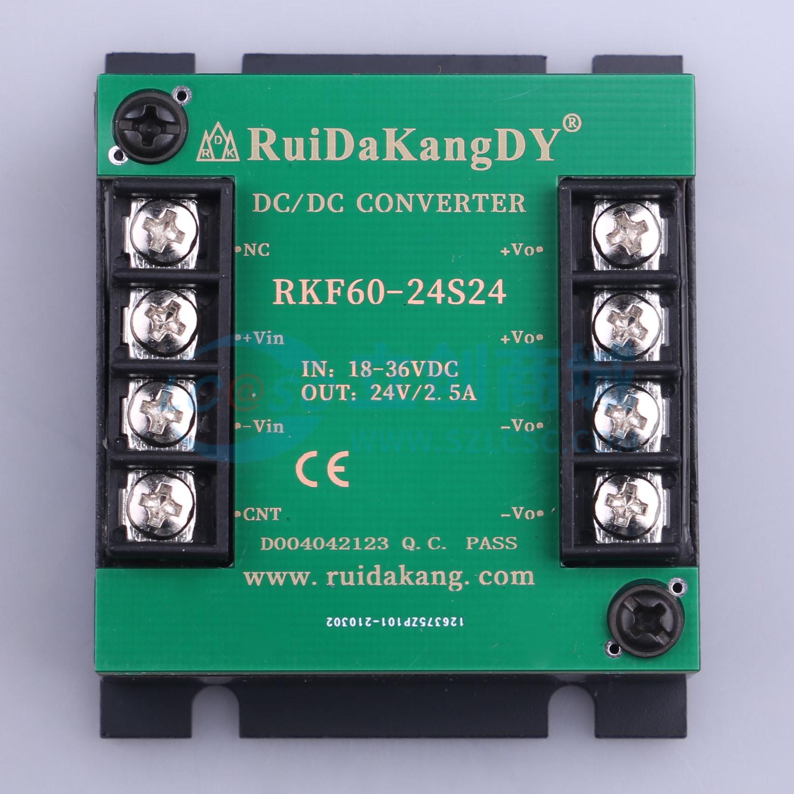 RKF60-24S24,提供输入与输出1500Vdc 的高隔离耐压和60W 的输出功率。应用于电力系统、智能家居、仪器仪表和电信等领域。