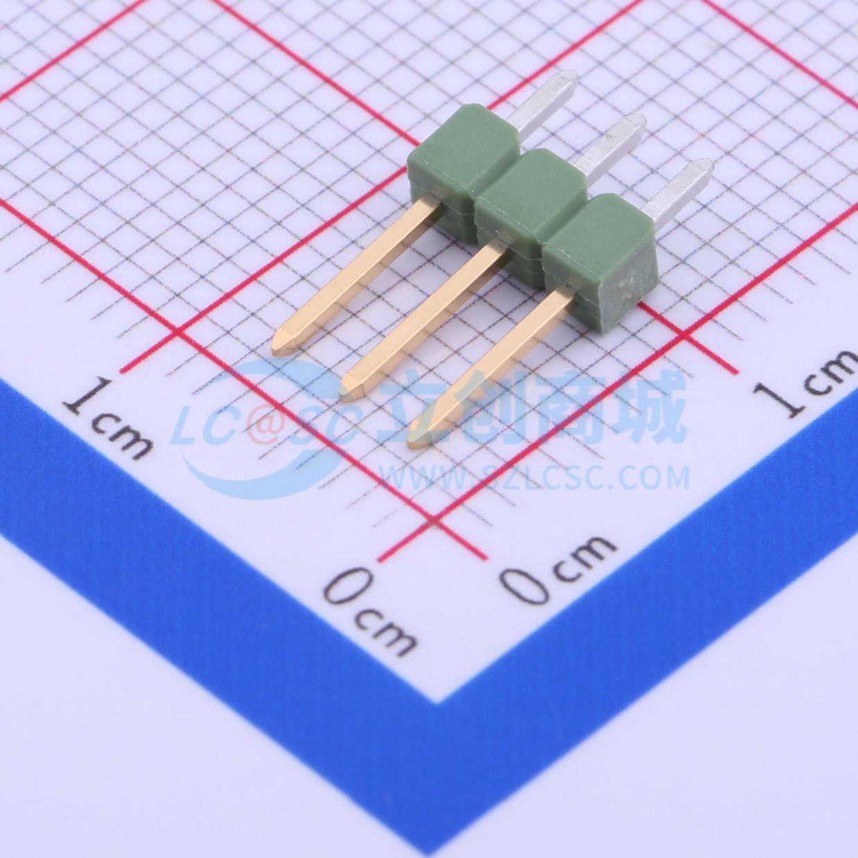 - PCB 安装式排针,垂直式,板对板,3 针,中心线间距 2.54 mm [.1 in],可断开,镀金(Au)/闪金,AMPMODU 排针
