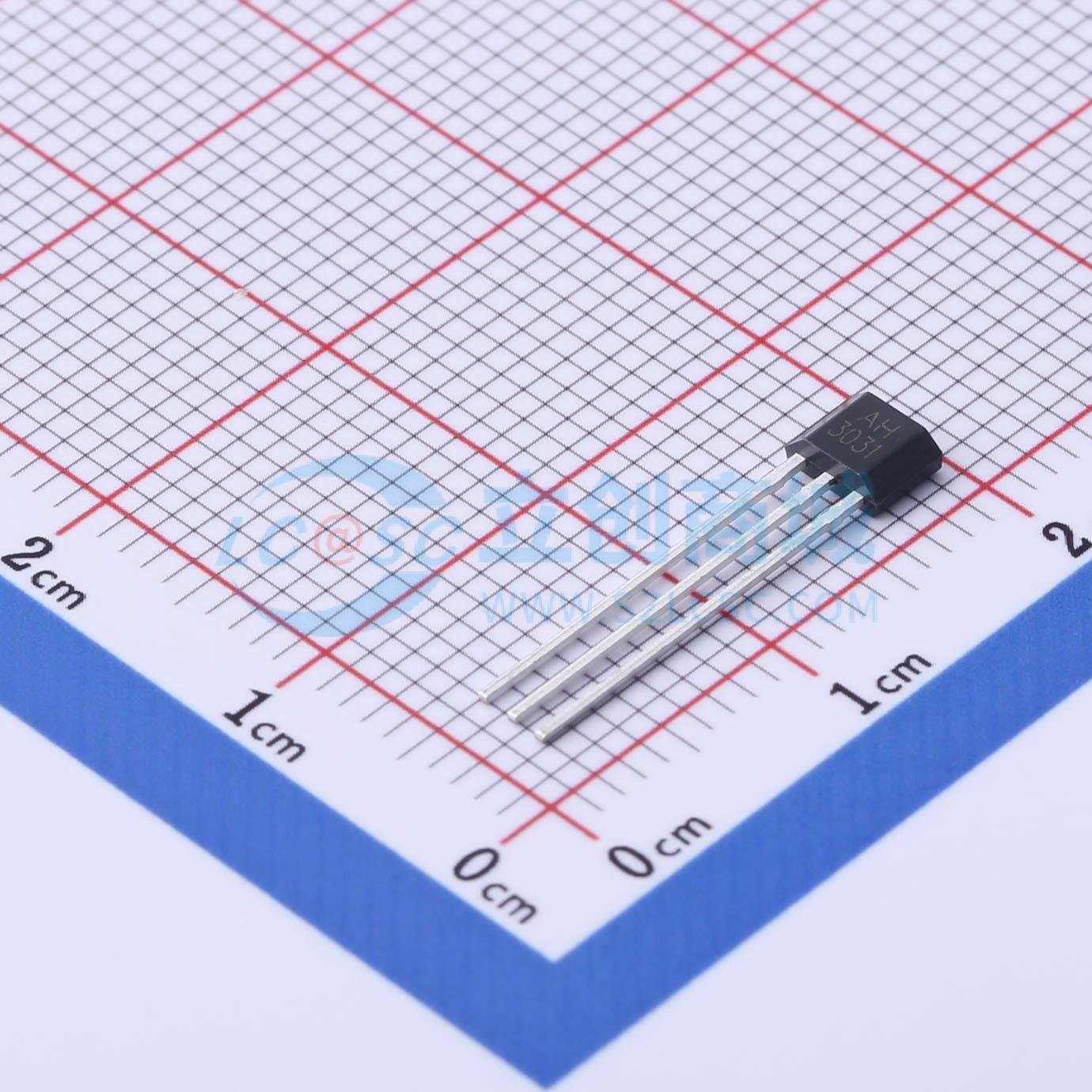 - AH3031是一款高灵敏数字式双极锁定霍尔电路,具有良好的温度稳定性和锁存功能。内置有反向电压保护器、电压调整器、温度补偿电路、霍尔电压发生器、信号放大器、史密特触发器和集电极开路输出驱动器等电路单元。性能优良的电压调整器和温度补偿电路,确保传感器在较宽的电压范围和温度范围内稳定地工作,反向电压保护电路避免了传感器受到反向电压的损伤。采用Bipolar工艺制成,在一些特殊应用场合具有更好的可靠性和稳定性。提供3款封装形式:SOT-23-3L(M型)、SOT-89(S型)和TO-92UA(UA型),均采用100%无铅雾锡电镀框架。