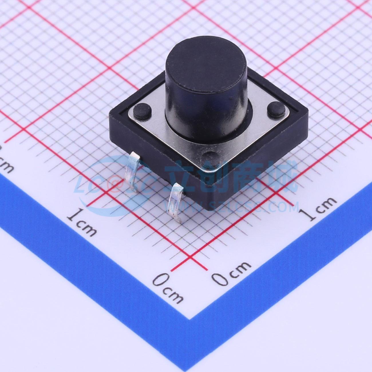 - 轻触开关,12x12x9.0, 插脚圆柱黑钮,260gf
