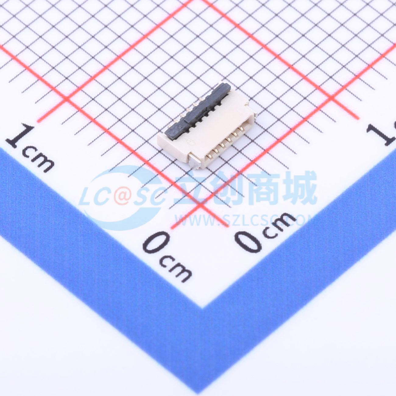 - 间距:0.5mm,P数:6P,卧贴,翻盖式后压,厚度H1.0mm,双侧触点/上下接,触头镀金