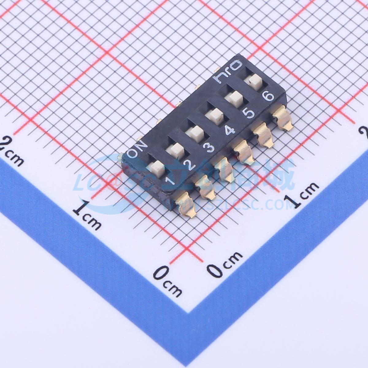33/管 间距2.54mm 平拨,凸起式 6位拨码开关