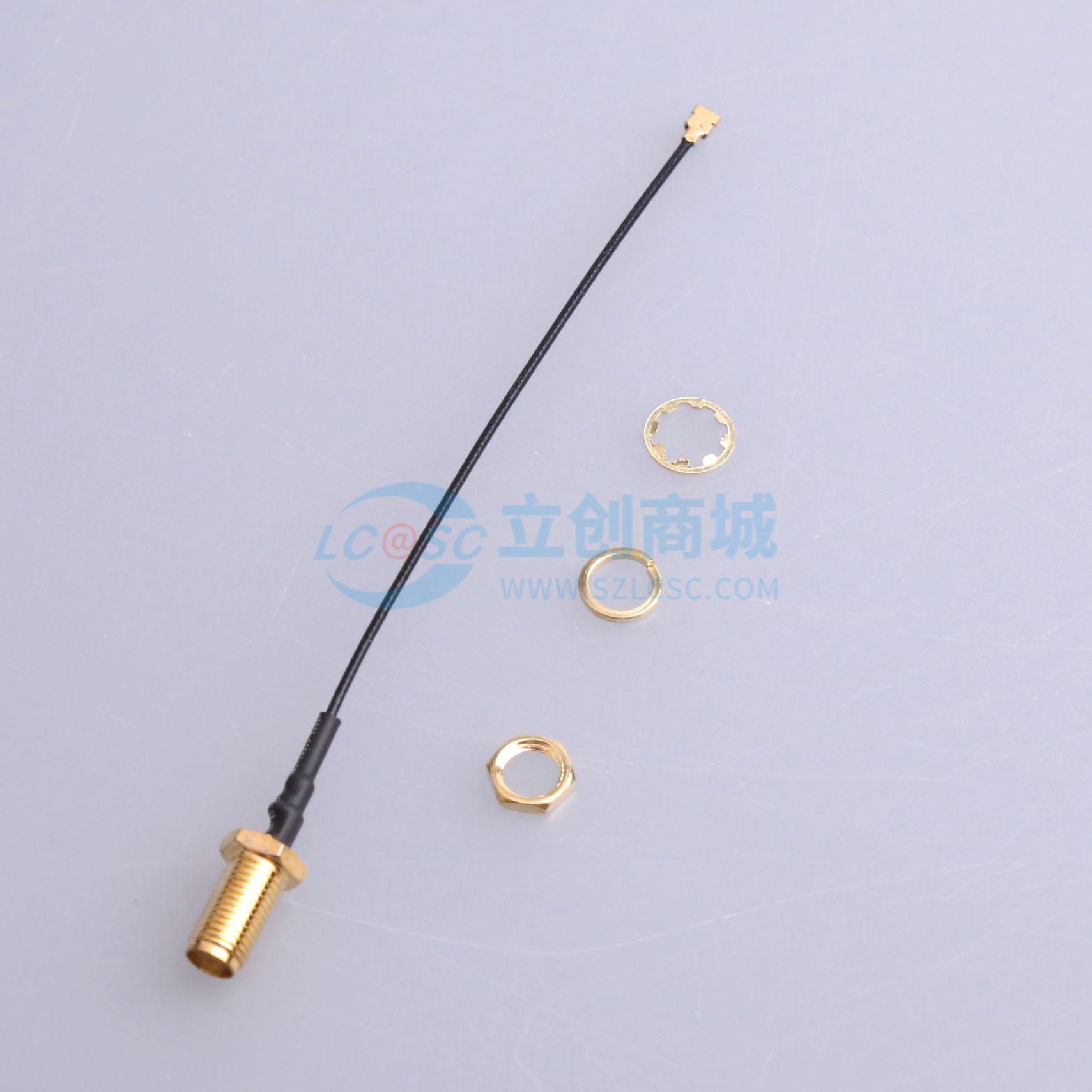 - SMA母头转IPEX射频连接线,线长100mm,内导体全铜镀银,绝缘体PTFE,屏蔽网全铜镀银,外层护套FEP,黑色,符合ROHS要求。