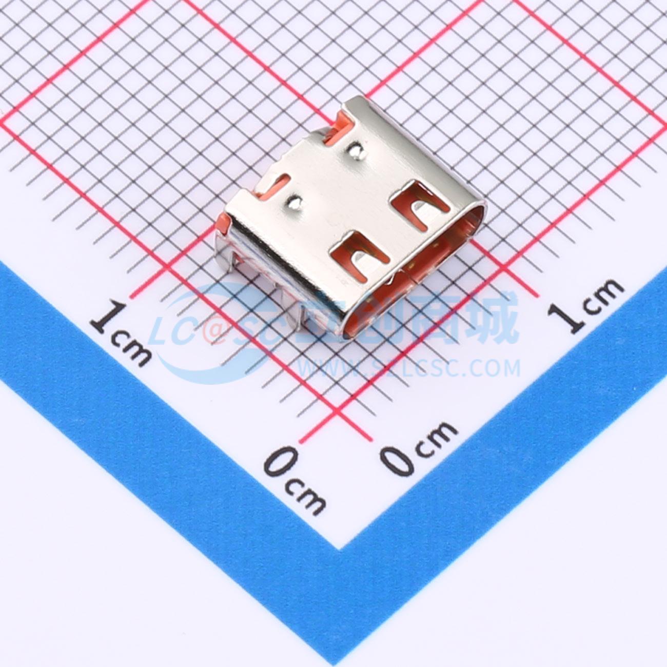 - 3.1TYPE-C连接器 母座16P四脚插板三模高导铜,LCP橙色