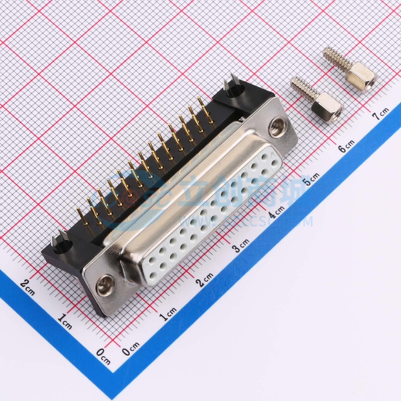 - D-SUB连接器,双排25P母头白胶,90度插板,铆合配螺丝型,车针2U