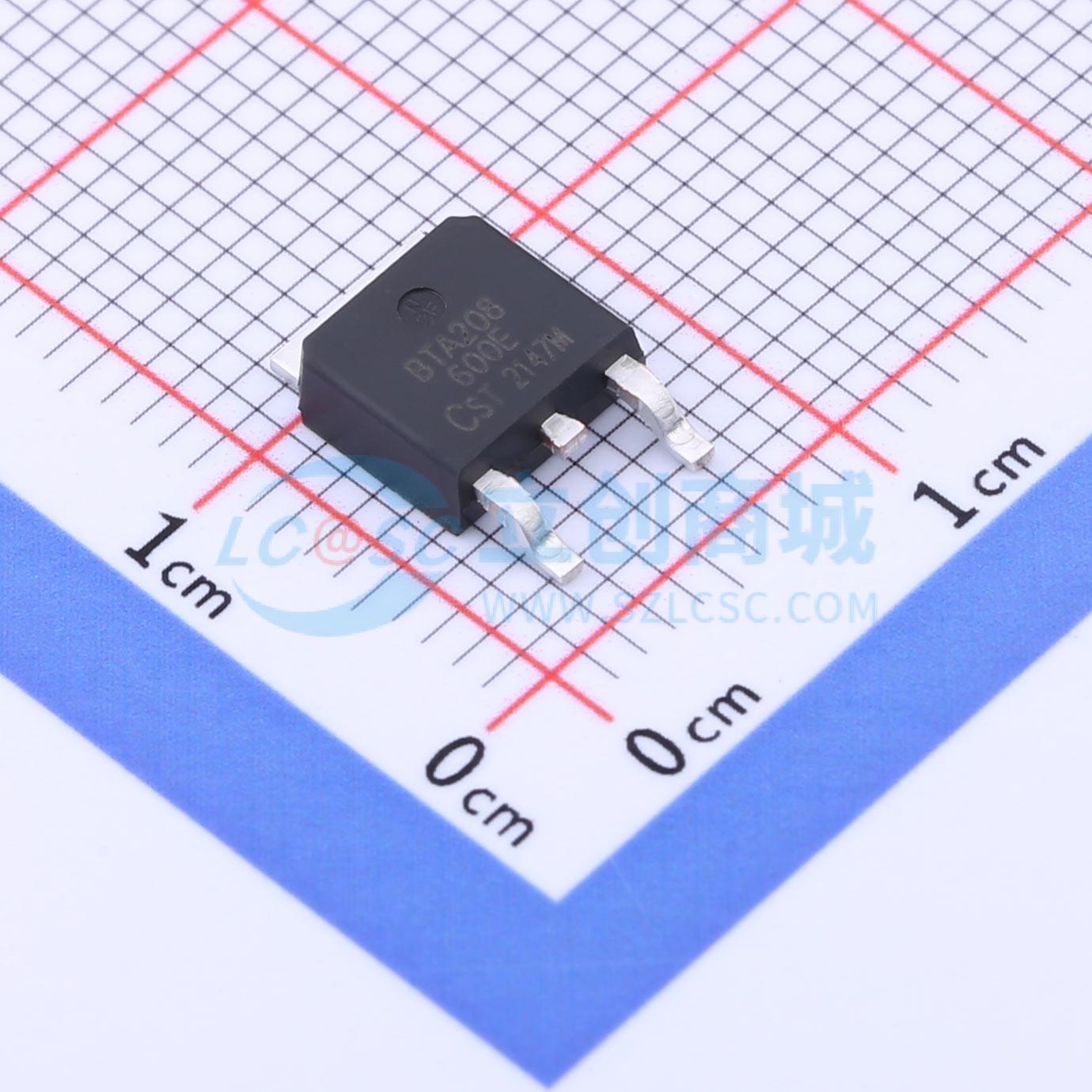 此图展示了型号为 BTA208-600E 的引脚布局