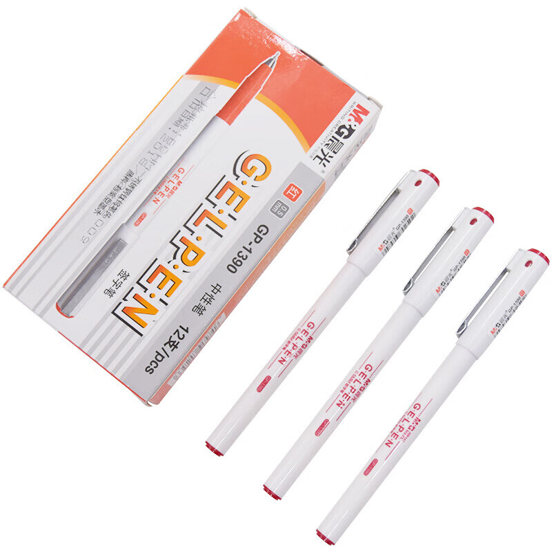 M&G(晨光文具)签字笔全针管白色笔壳中性笔0.5mm简约高颜值学生考试水笔商务办公碳素小白杆黑笔 红色