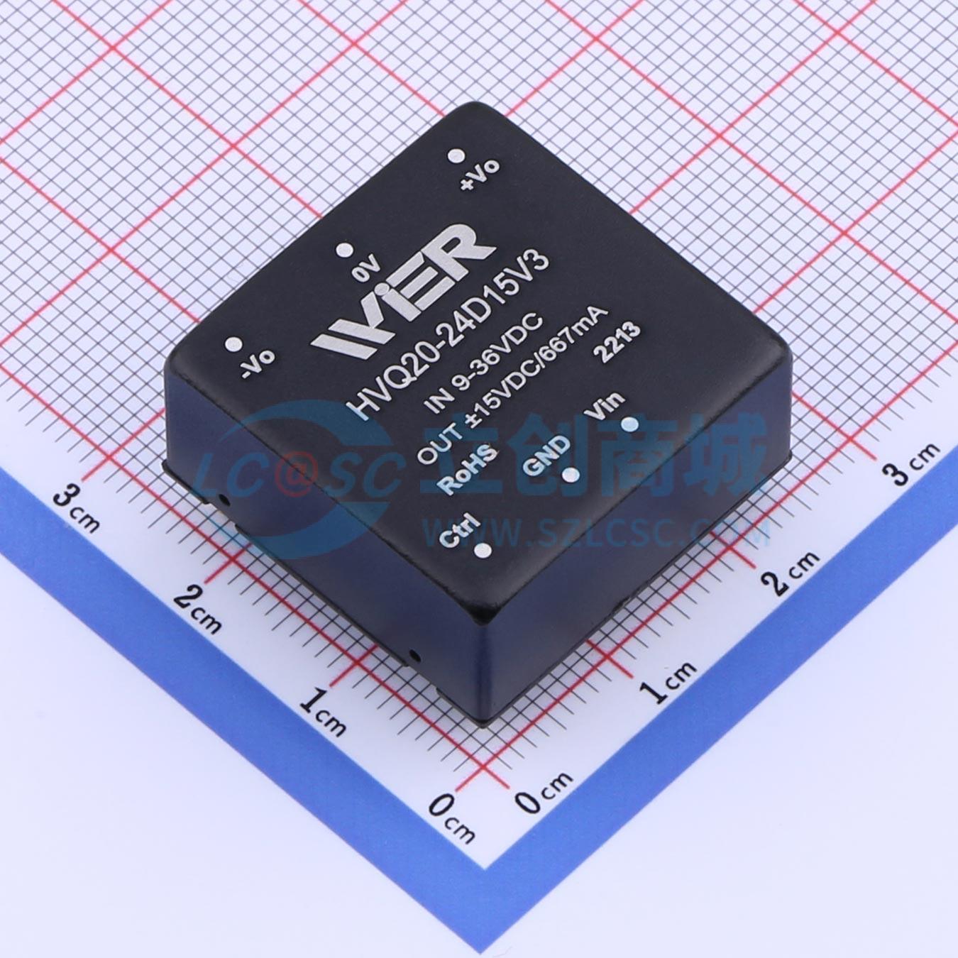 此图展示了型号为 HVQ20-24D15V3 的引脚布局