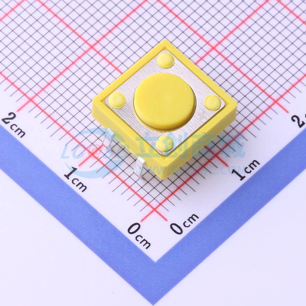 - 12*12*4.3轻触开关,250克按力,黄胶,插板式