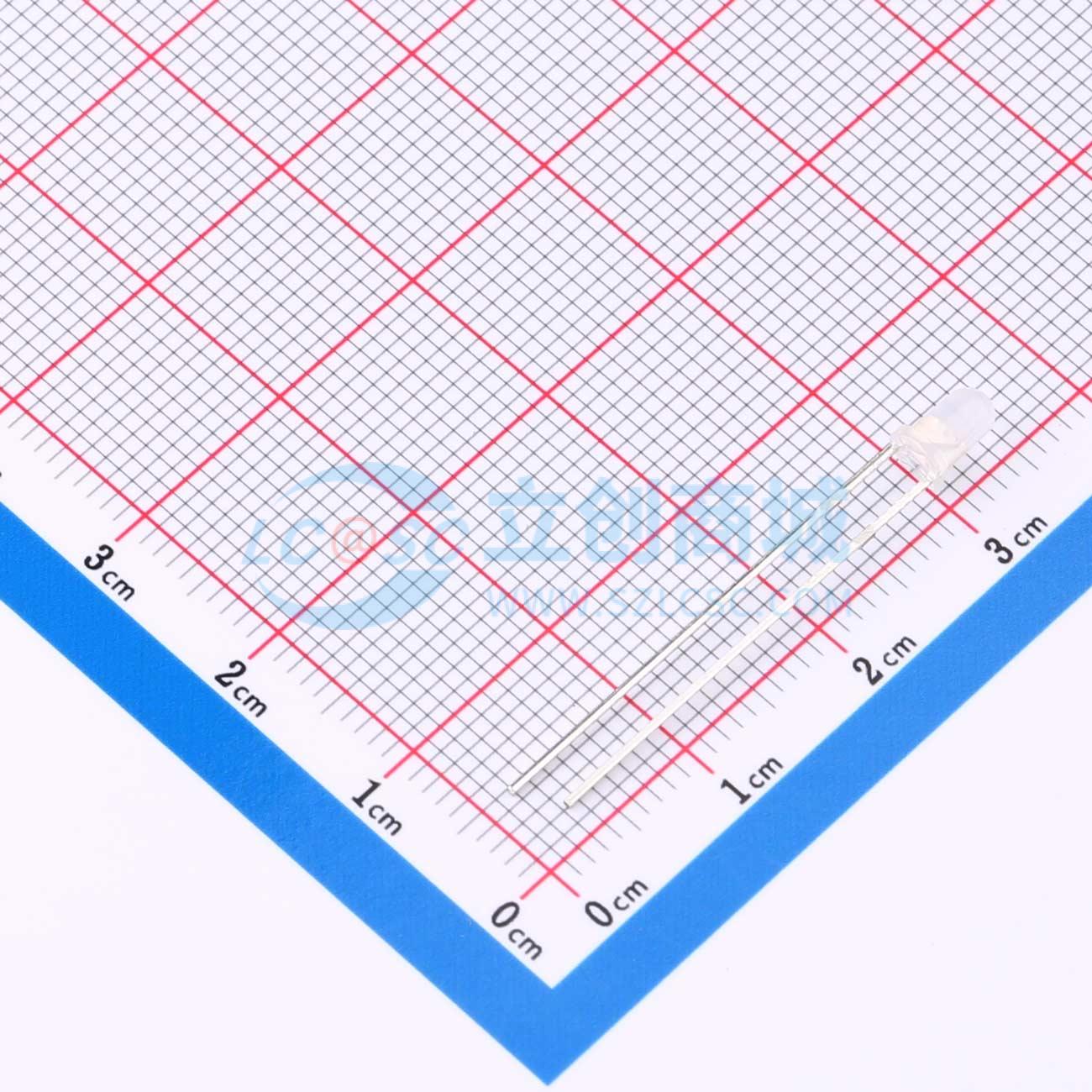 3mm 直径封装 为高亮度应用而设计的产品 The series specially designed for applications requiring higher brightness. 优秀的室内环境性能 Superior performance in indoor environment. 发光颜色Emitted color: