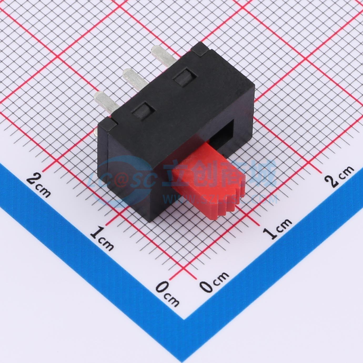 - 拨动开关,立式直脚双排两档,16.2x10.5x8.5弧形红柄,柄长7mm