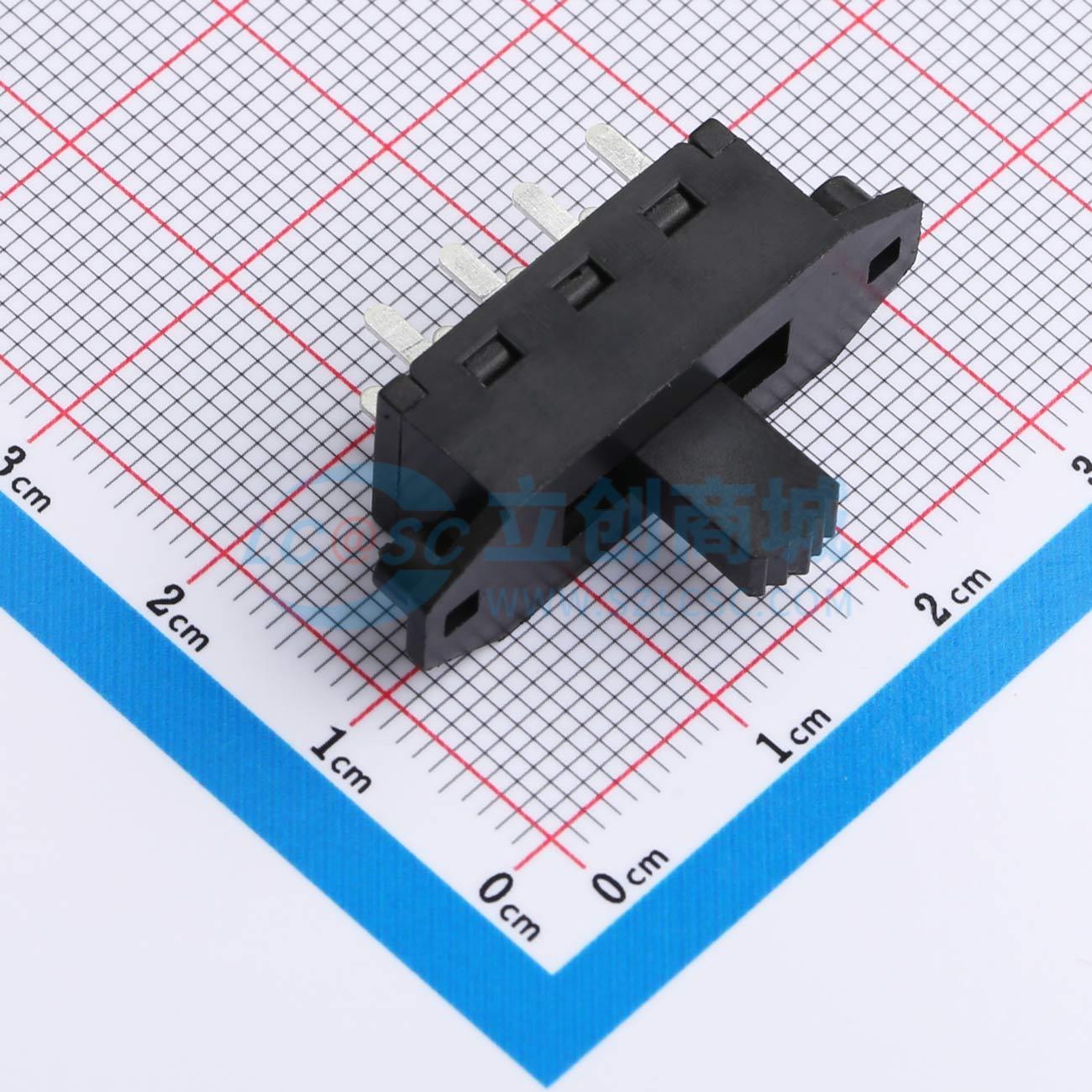 - 拨动开关,立式直脚双排三档,30.2x10.5x8.5弧形黑柄全塑带耳,柄长8mm