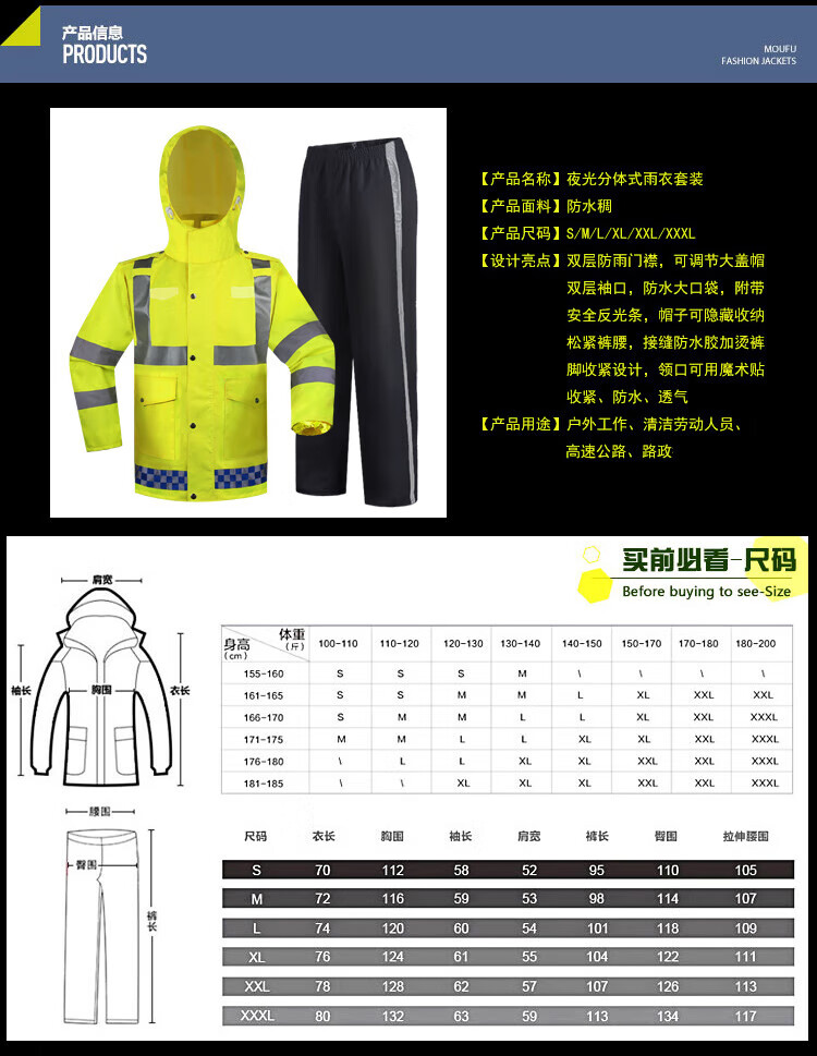 志臻 防护反光雨衣荧光黄安全警示雨衣 分体防雨服 春秋单款套装 XL-170