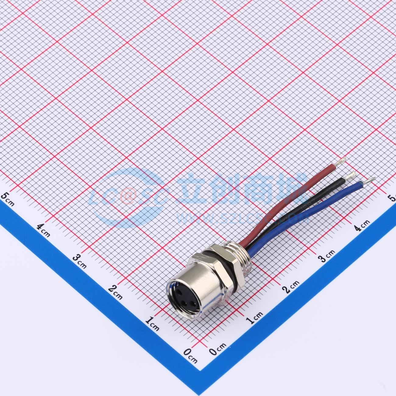 M8-3P后锁母座带线3C*24AWG, L=3CM