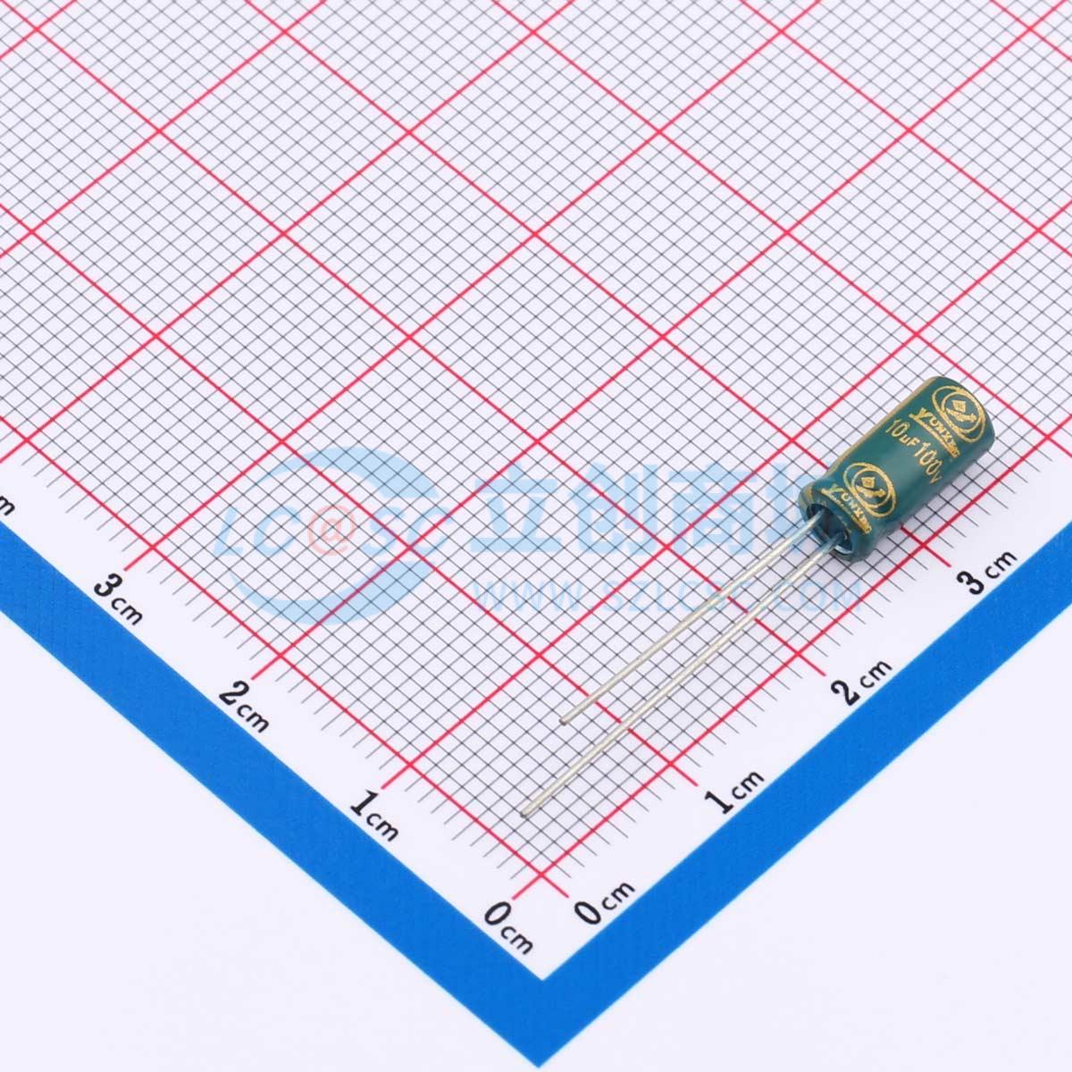 - 容值:10uF 精度:±20% 额定电压:100V 电容体直径:5mm 电容体长度:11mm 脚间距:2mm 工作寿命:2000hrs@105℃ 工作温度:-55℃~+105℃