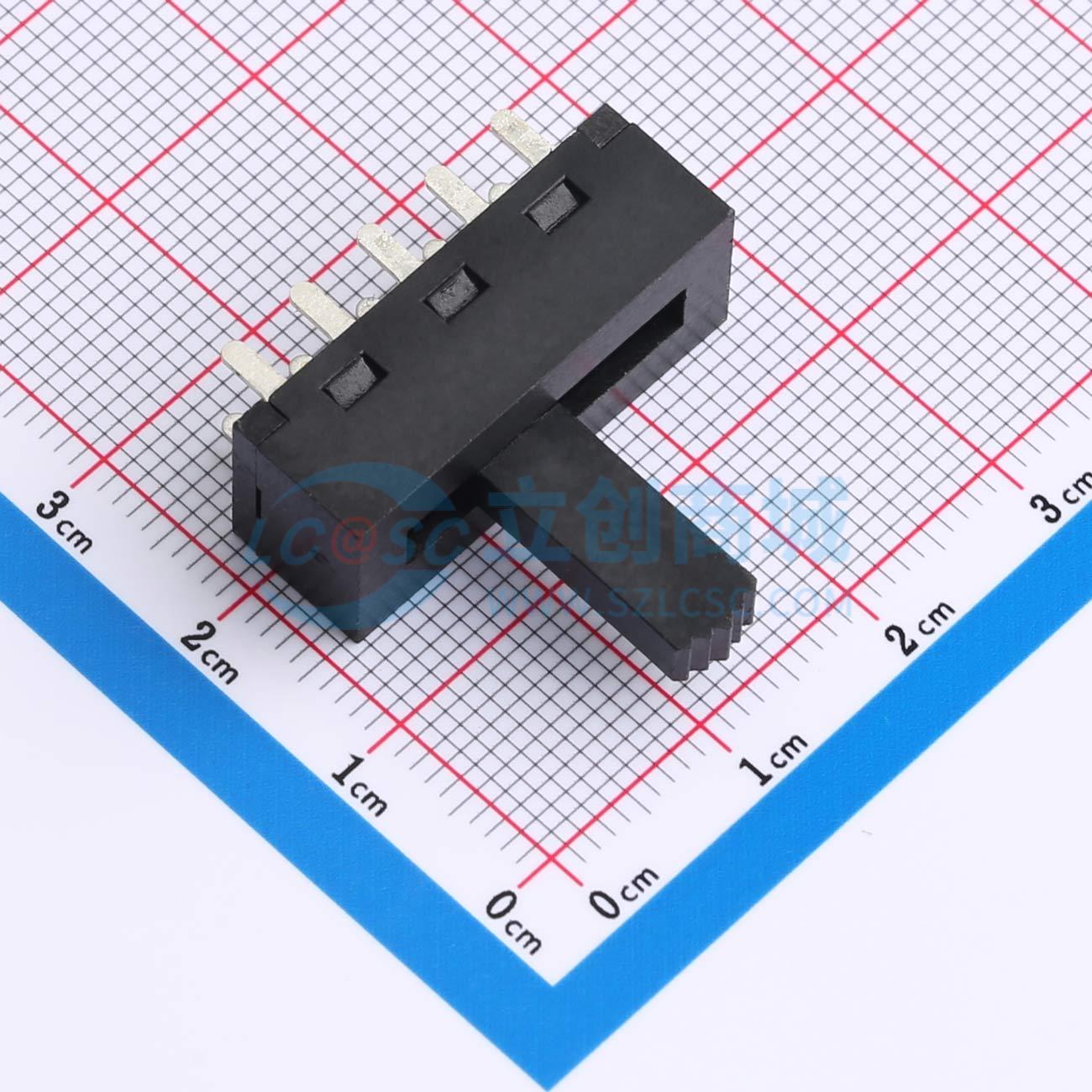 - 拨动开关,立式直脚双排四档,25x10.5x8.5弧形黑柄,柄长14mm