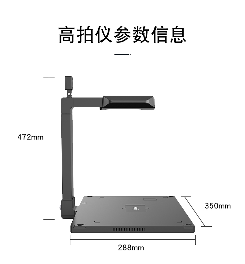 幅面调节:铝杆可伸缩设计,支持A3/A4幅面切换,拍摄杆与底座可拆卸,底座为硬座结构