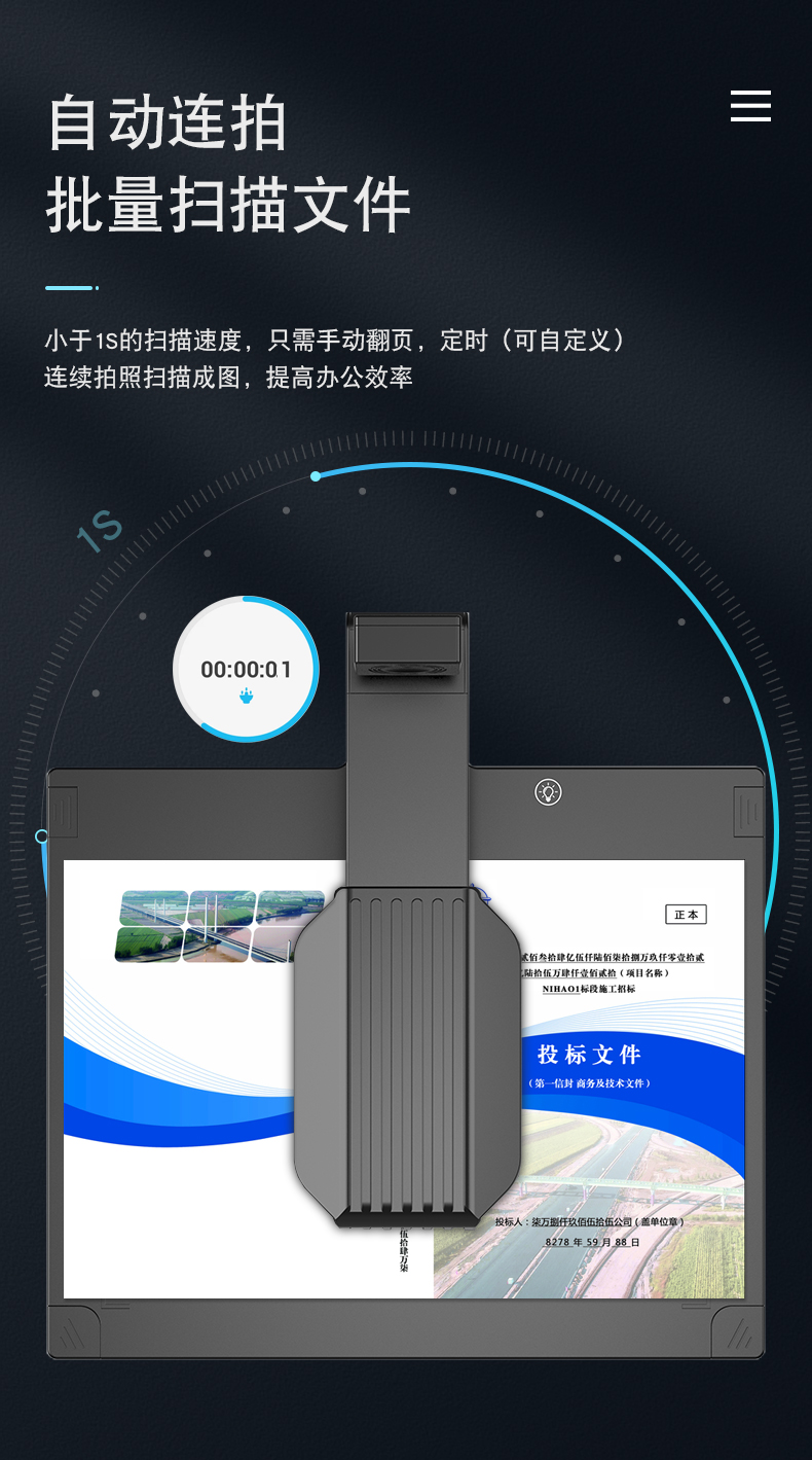 对焦与效率:一键自动对焦,无需手动调校,扫描速度约1秒/张,提升办公效率