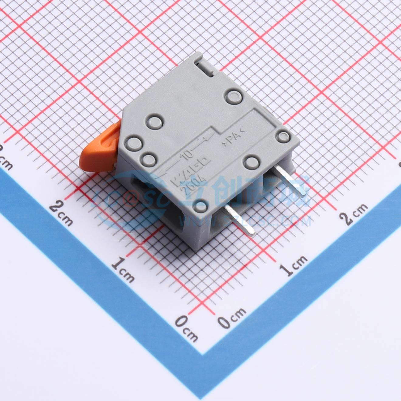 PCB 接线端子; 操作手柄; 4 mm2; 焊针间距 5 mm; 1极; 推入式笼夹; 4,00 mm2; 灰色
