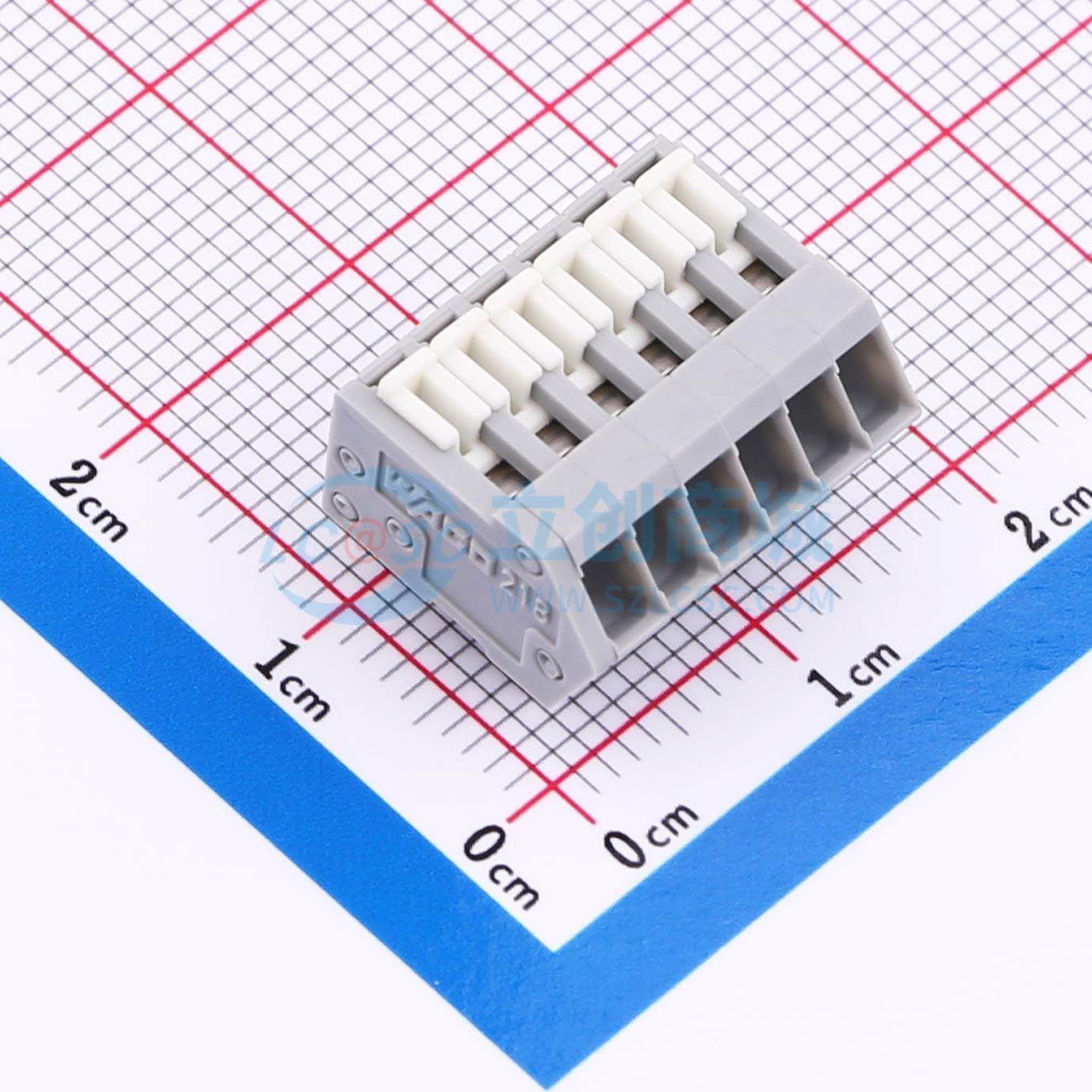 - PCB 接线端子; 滑动键; 0.5 mm2; 焊针间距 2.54 mm; 6极; 0,50 mm2; 灰色