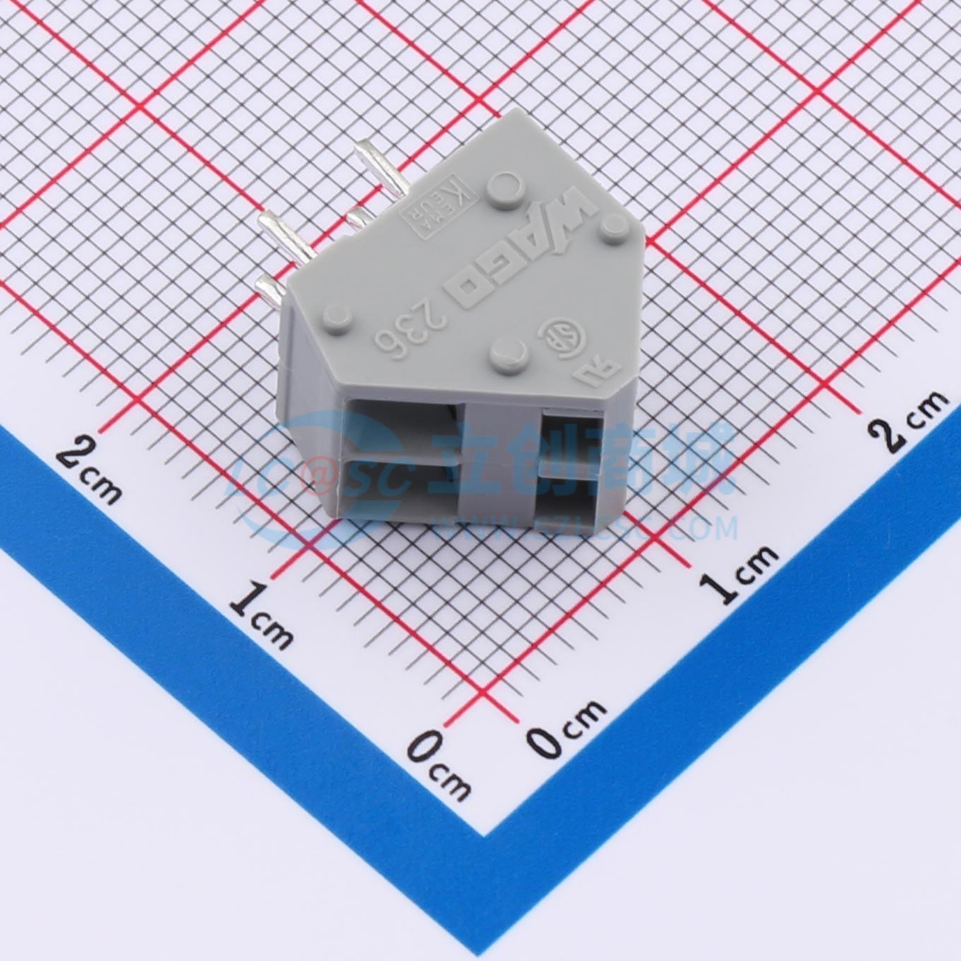 - PCB 接线端子; 2.5 mm2; 焊针间距 5 / 5.08 mm; 2极; 可跨接; 2,50 mm2; 灰色